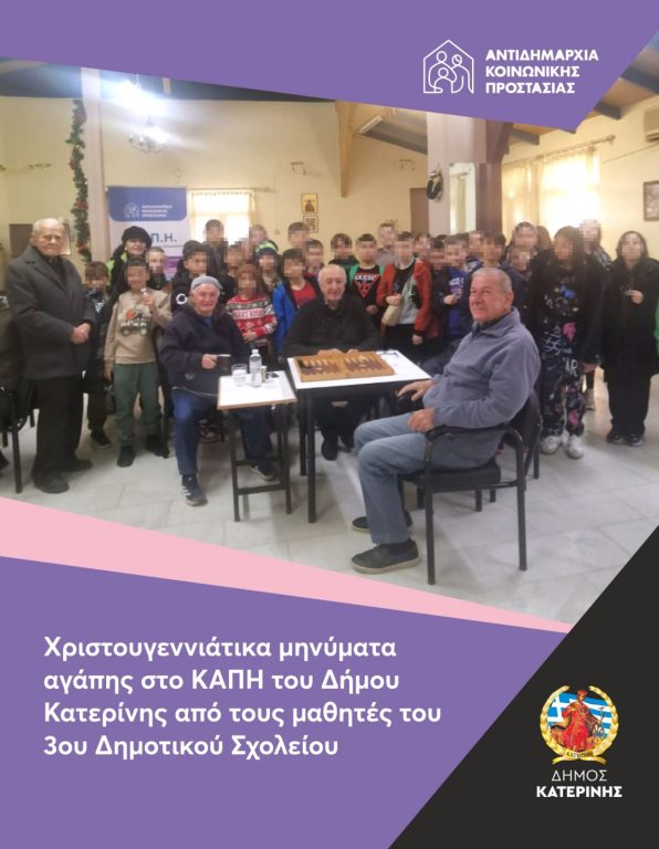 Δημος Κατερινης – Αντιδημαρχια Κοινωνικης Προστασιας: Η ψυχολογια των γιορτων μεσα απο τα ματια της τριτης ηλικιας – Ενημερωτικη εκδηλωση στο ΚΑΠΗ