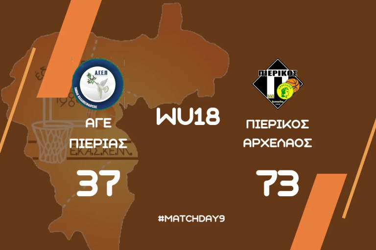 Πρωταθλημα Νεανιδων ΕΚΑΣΚΕΜ (9η αγωνιστικη): ΑΓΕ Πιεριας – ΣΦΚ Πιερικος Αρχελαος 37-73