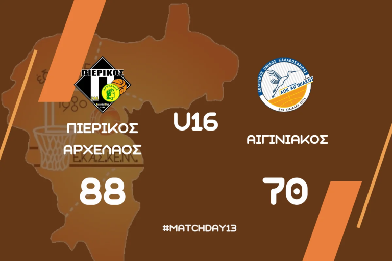 Πρωταθλημα Παιδων ΕΚΑΣΚΕΜ (α’ φαση – 13η αγωνιστικη): ΣΦΚ Πιερικος Αρχελαος – ΑΟΚ Αιγινιακος 88-70