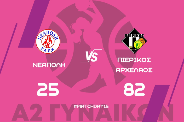Α2 Εθνικη Κατηγορια Γυναικων (15η αγωνιστικη): Νεαπολη ΑΚΠΚ – ΣΦΚ Πιερικος Αρχελαος 25-82