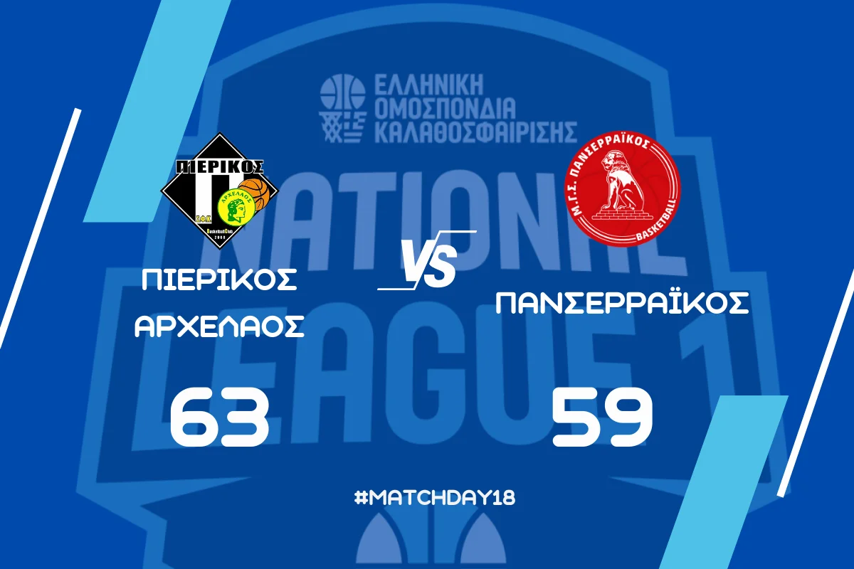 National League 1 (18η αγωνιστικη): ΣΦΚ Πιερικος Αρχελαος – ΜΓΣ Πανσερραικος 63-59