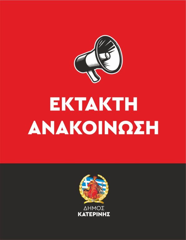 Δημος Κατερινης: Κλειστη για το κοινο εως & τις 16/01 η Ταμειακη Υπηρεσια