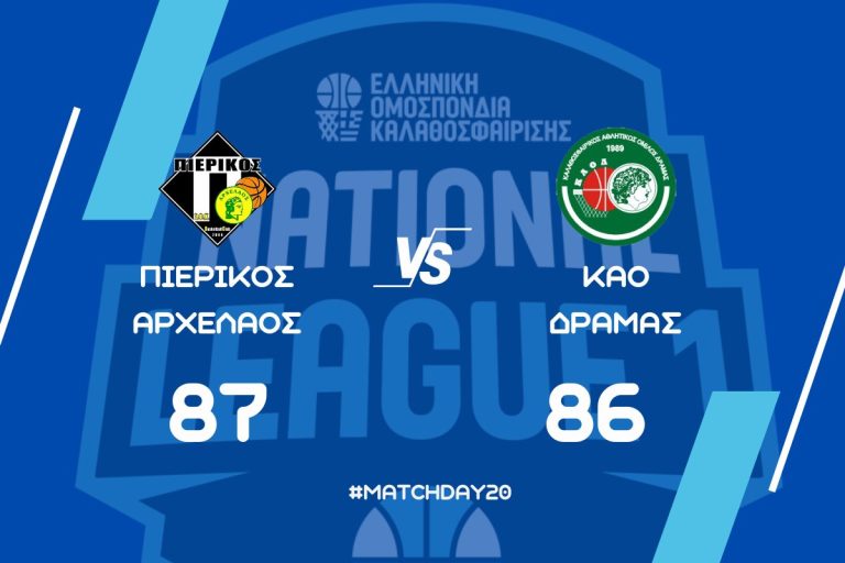 National League 1 (20η αγωνιστικη): ΣΦΚ Πιερικος Αρχελαος – ΚΑΟ Δραμας 87-86