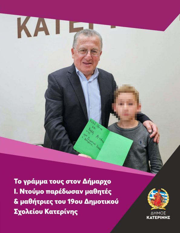 Το γραμμα τους στον Δημαρχο Ι. Ντουμο παρεδωσαν μαθητες & μαθητριες του 19ου Δημοτικου Σχολειου Κατερινης