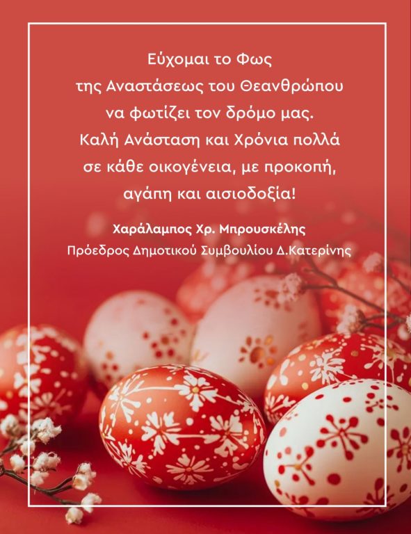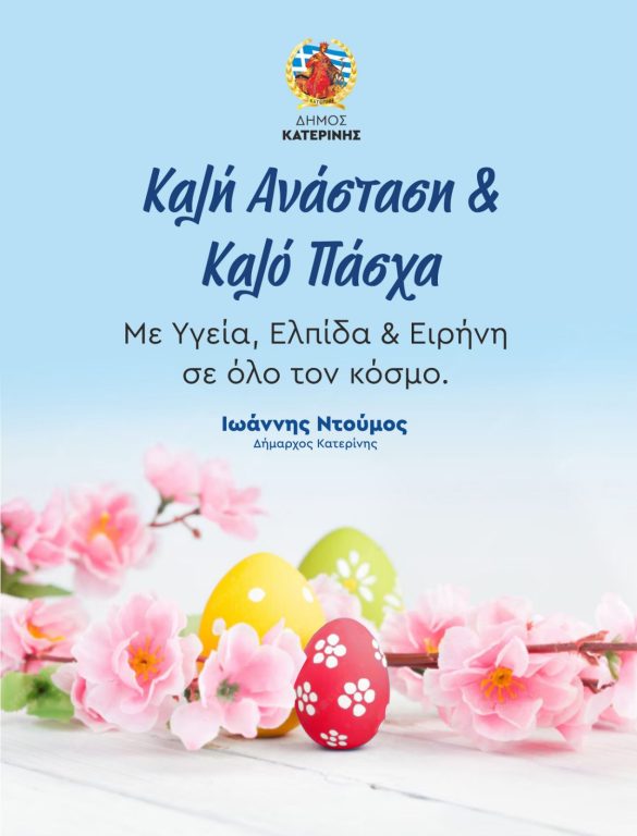 Πασχαλινες ευχες του Δημαρχου Κατερινης Ιωαννη Ντουμου