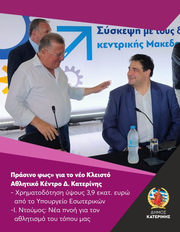 «Πρασινο φως» για το νεο Κλειστο Αθλητικο Κεντρο Δ. Κατερινης – Χρηματοδοτηση υψους 3,9 εκατ. ευρω απο το Υπουργειο Εσωτερικων