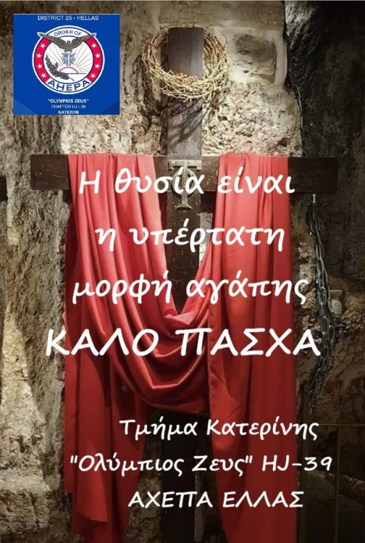 ΕΥΧΕΤΗΡΙΑ ΠΑΣΧΑΛΙΝΗ ΚΑΡΤΑ ΤΟΥ ΤΜΗΜΑΤΟΣ “ΟΛΥΜΠΙΟΣ ΖΕΥΣ” ΚΑΤΕΡΙΝΗΣ HJ-39 ΤΗΣ ΑΧΕΠΑ ΕΛΛΑΣ