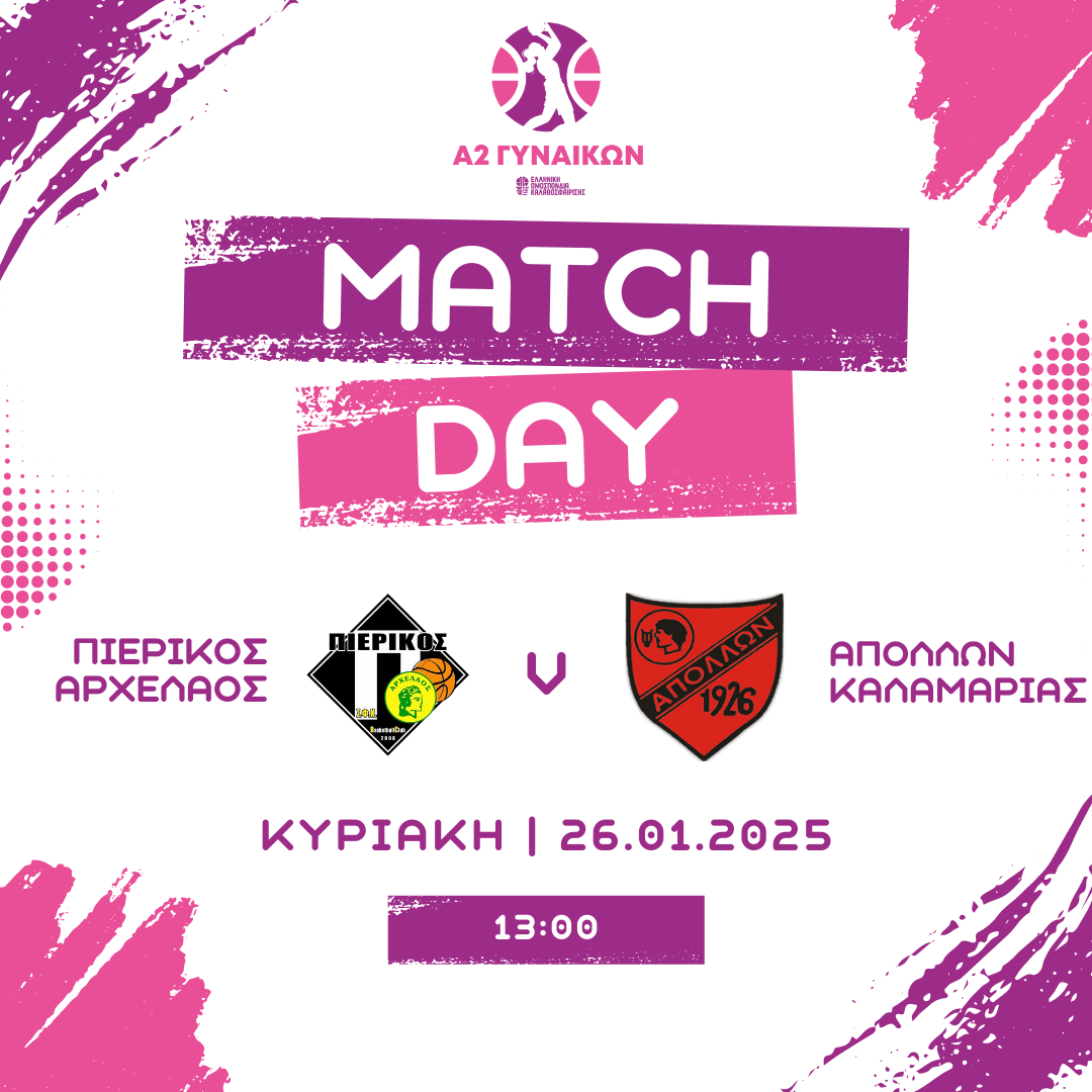 Α2 Γυναικών (16η αγωνιστική): Πιερικός Αρχέλαος – Απόλλων Καλαμαριάς – 26 Ιανουαρίου
