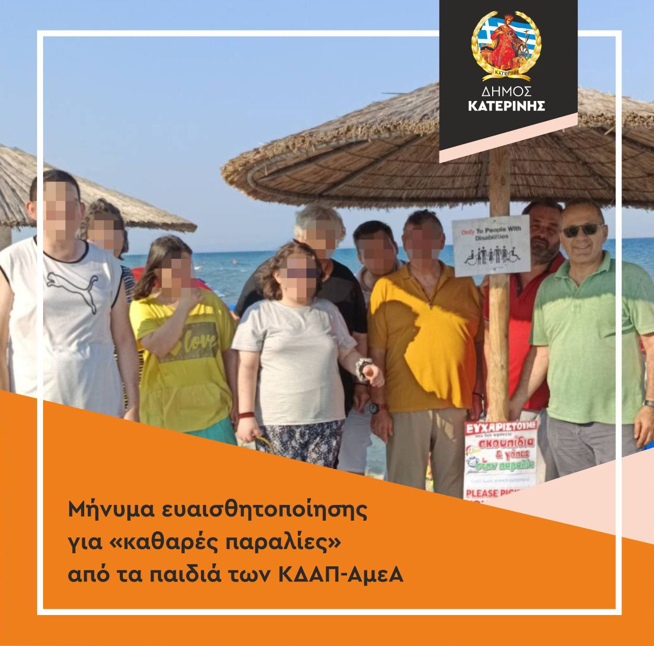 «ΕΥΧΑΡΙΣΤΙΕΣ ΠΡΟΣ ΤΟΥΣ ΛΟΥΟΜΕΝΟΥΣ ΠΟΥ ΔΕΝ ΑΦΗΝΟΥΝ ΣΚΟΥΠΙΔΙΑ ΚΑΙ ΓΟΠΕΣ ΣΤΗΝ ΠΑΡΑΛΙΑ». Με αυτό το λιτό αλλά ουσιαστικό μήνυμα, παιδιά και προσωπικό των ΚΔΑΠ-ΑμεΑ του Δήμου Κατερίνης, μαζί με τον Αντιδήμαρχο Υπηρεσιών Προσχολικής Αγωγής & Δημιουργικής Απασχόλησης, Μιχάλη Γεωργιάδη, έστειλαν ένα δυνατό μήνυμα ευαισθητοποίησης, λίγο πριν τον καλοκαιρινό αποχαιρετισμό της δομής.