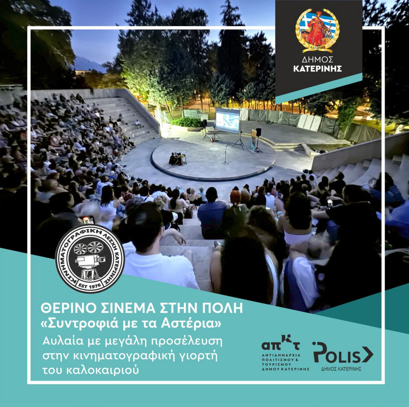 Σε όλη τη διάρκεια των προβολών του καλοκαιριού, δημότες της Κατερίνης καθώς και επισκέπτες παρακολούθησαν στο δημοτικό θέατρο, στο καταπράσινο πάρκο μας, σύγχρονες αγαπημένες ταινίες, υψηλής ποιότητας και αισθητικής, που πρότειναν η Κινηματογραφική Λέσχη και η Αντιδημαρχία Πολιτισμού.
