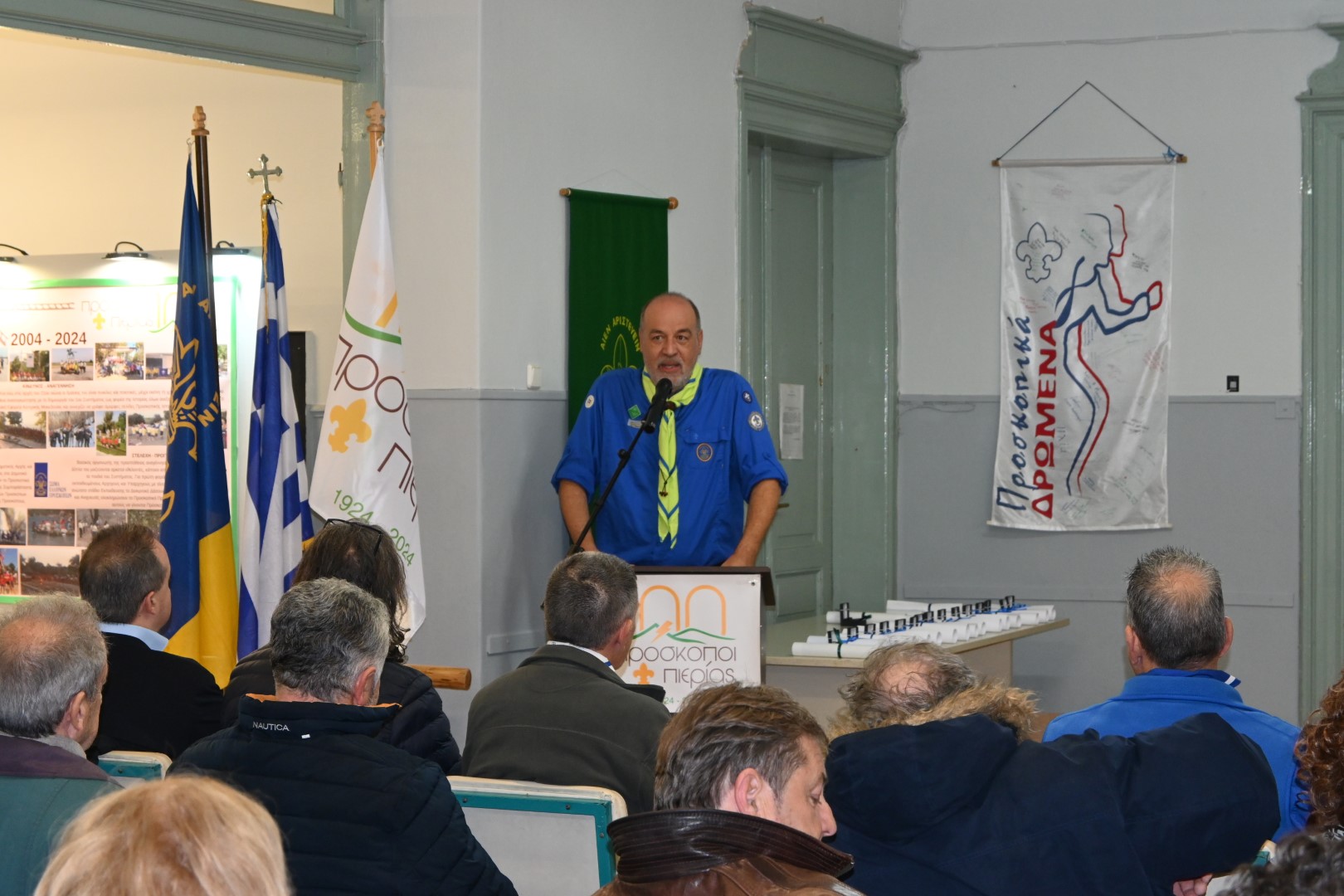 H Αστική Σχολή γέμισε από παλιούς και νέους Πρόσκοπους της Κατερίνης και της Πιερίας καθώς και από προσκοπικά στελέχη και μέλη άλλων Νομών της Χώρας, τα οποία, πριν από την έναρξη της εκδήλωσης, περιηγήθηκαν την έκθεση ιστορικού φωτογραφικού υλικού από το 1924 μέχρι και το 2024, αλλά και την έκθεση προσκοπικών στολών, σημαιών, αφισών και συνθημάτων, καθώς και άλλων αντικειμένων.