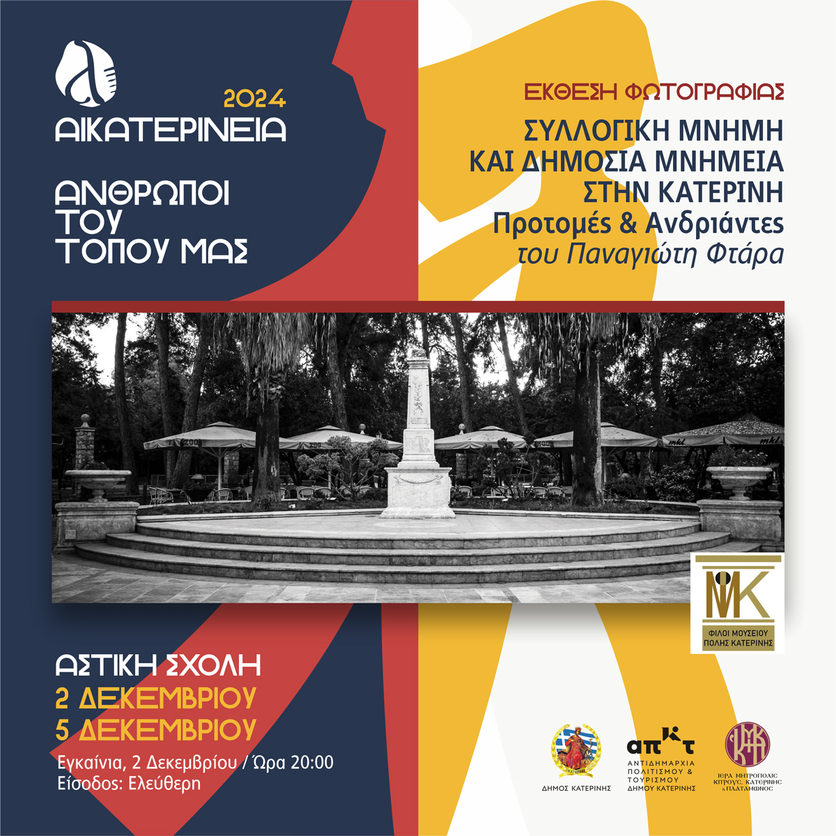 ΑΙΚΑΤΕΡΙΝΕΙΑ: “Συλλογική μνήμη και δημόσια μνημεία στην Κατερίνη (προτομές, ανδριάντες)” – 2 Δεκεμβρίου