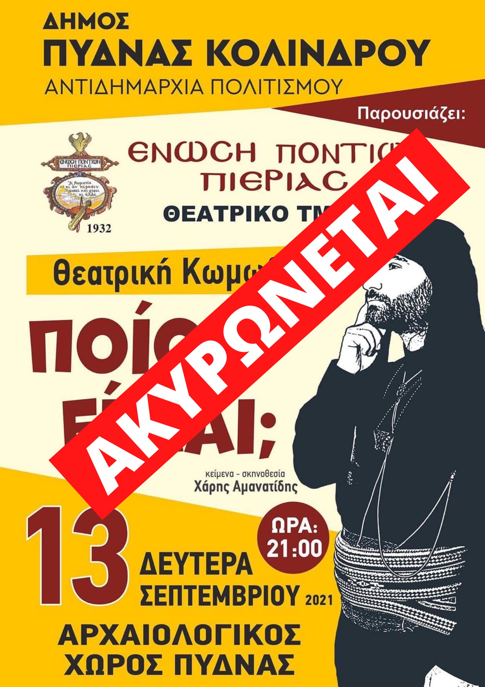 Ακύρωση της θεατρικής παράστασης της Ένωσης Ποντίων Πιερίας «Ποιος Είμαι»