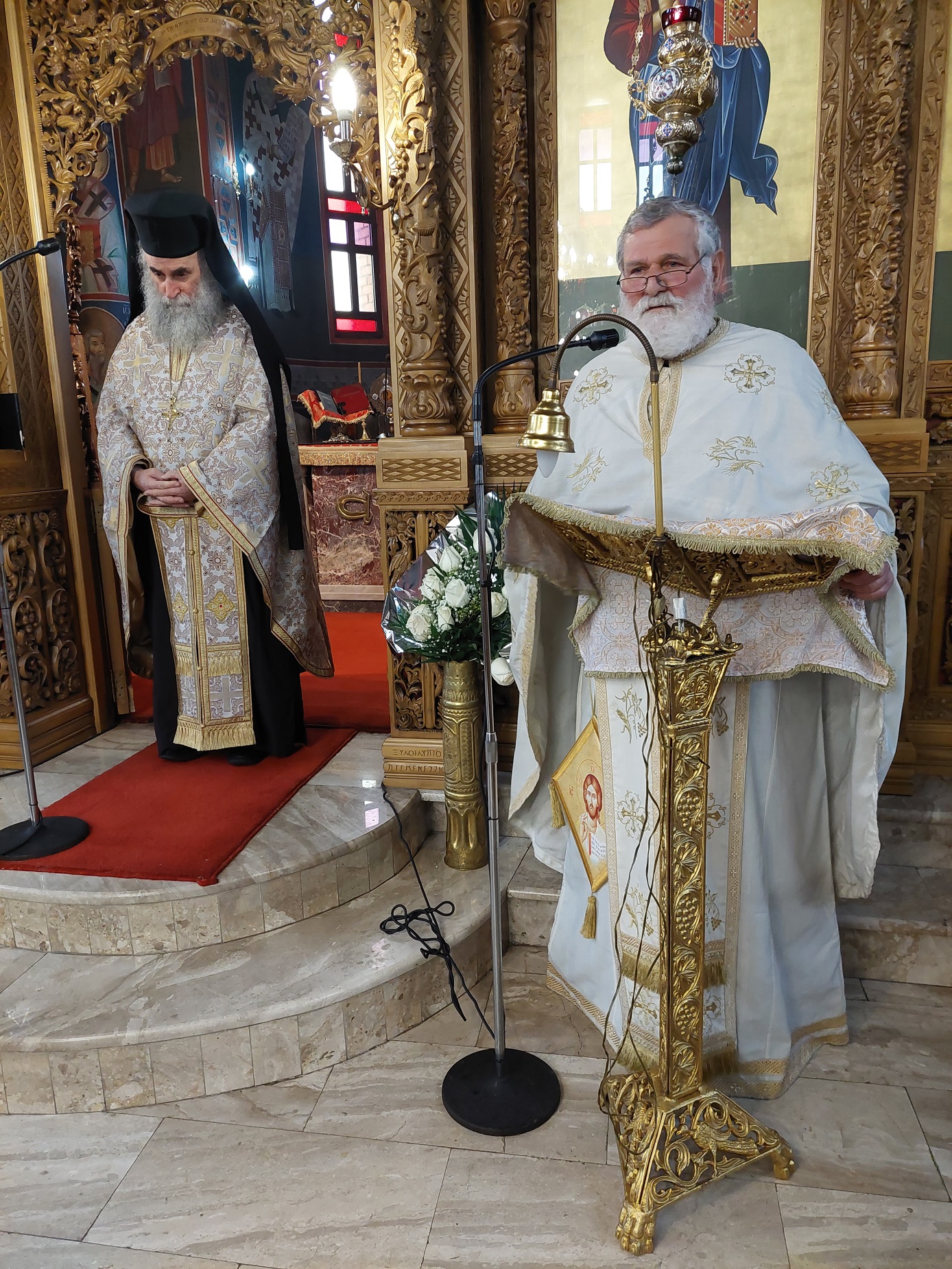 Λίγο πριν την απόλυση της σημερινής Θείας Λειτουργίας, τελέσαμε το μνημόσυνο των δύο αυτών Αρχιερέων που ποίμαναν την ιστορική επισκοπή του Δίου και διασώζονται τα ονόματά τους από τις ιστορικές πηγές. Η Ενορία μας, συναισθανόμενη το βάρος του λαμπρού κι ενδόξου παρελθόντος της, τιμά σήμερα τις απαρχές των λαμπρών καταβολών της. Γι΄αυτό αποφασίσαμε το φετινό ΑΝΤΑΜΩΜΑ να είναι αφιερωμένο στην πάλαι ποτέ διαλάμψασαν επισκοπή Δίου, αναγνωρίζοντας και αναδεικνύοντας τη σπουδαιότητα της Εκκλησιαστικής ιστορίας του τόπου μας και αποδίδοντας φόρο τιμής στους πρωτεργάτες του Ευαγγελίου που αγωνίστηκαν για τη διάδοση και τη θεμελίωση του Χριστιανικού μηνύματος στον ιστορικό τόπο που έχουμε την ευλογία να καταγόμαστε και να διαβιούμε.