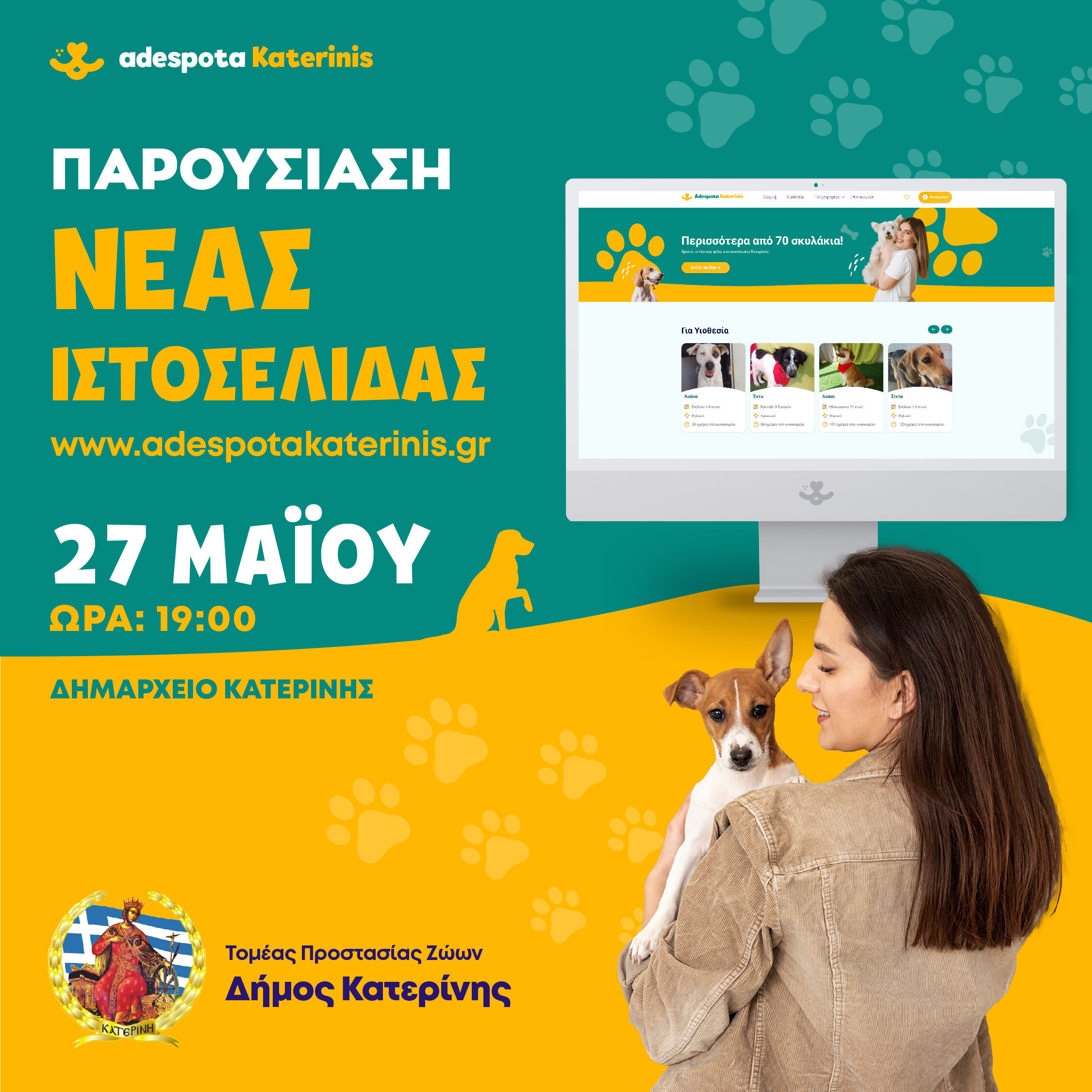 Ανοικτή πρόσκληση για την εκδήλωση παρουσίασης με θέμα: «Η ΝΕΑ ιστοσελίδα του Δήμου Κατερίνης για τα αδέσποτα ζώα συντροφιάς» – 27 Μαΐου