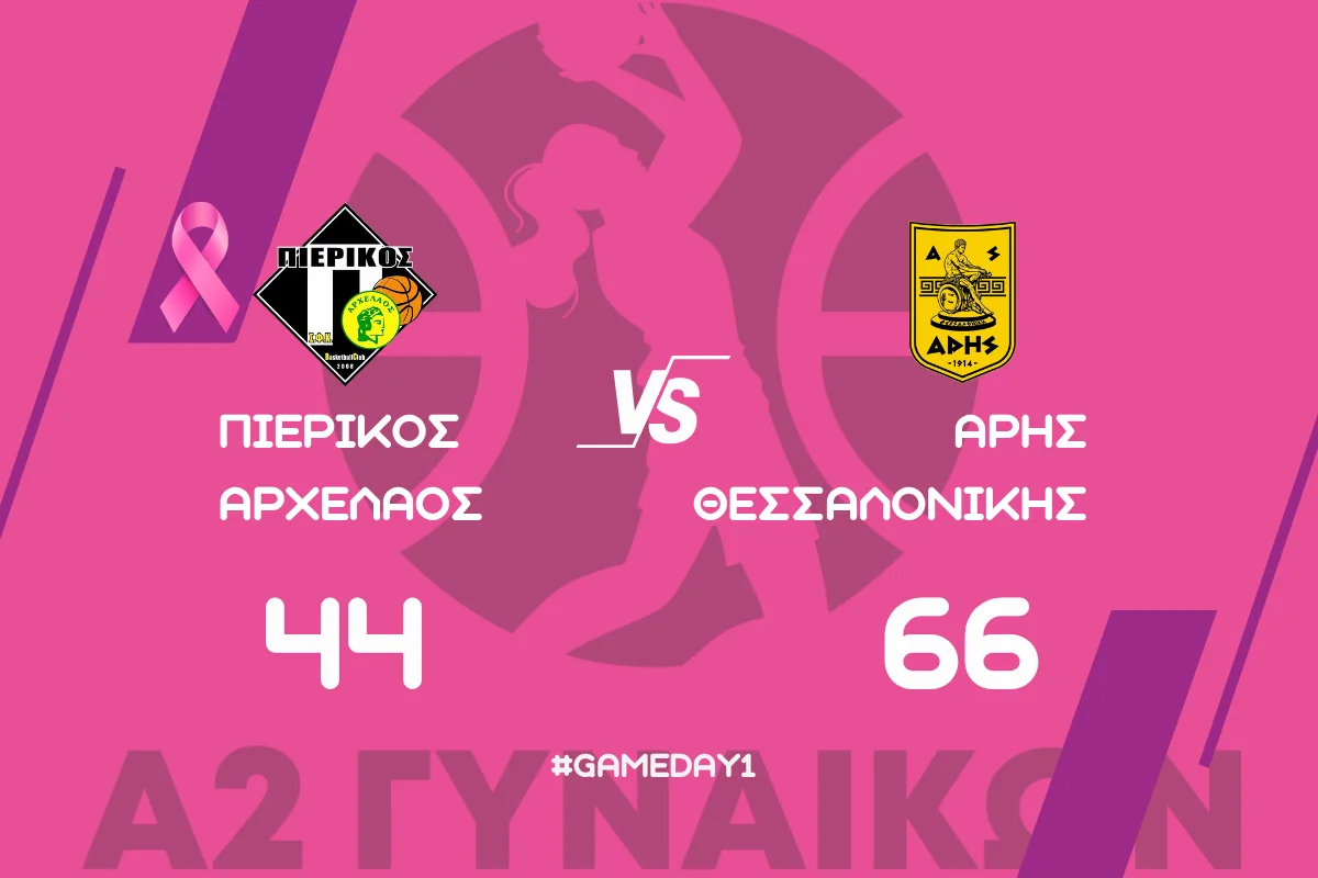 Ο Πιερικός Αρχέλαος ηττήθηκε με 44-66 από τον Άρη Θεσσαλονίκης