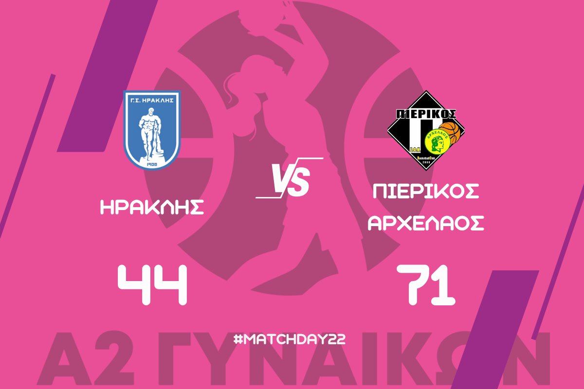 Ο Πιερικός Αρχέλαος επικράτησε με 44-71 του Ηρακλή στο Ιβανώφειο Κλειστό Γυμναστήριο σε αγώνα για την 22η και τελευταία αγωνιστική του 2ου ομίλου της Α2 Εθνικής Κατηγορίας Γυναικών.