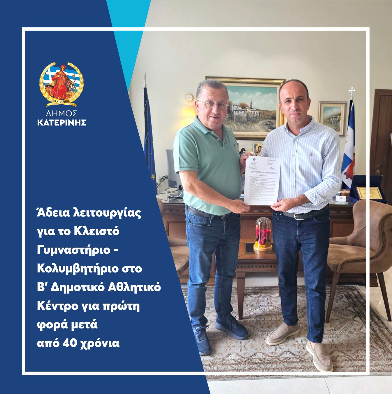 Δήμος Κατερίνης: Άδεια λειτουργίας για το Κλειστό Γυμναστήριο - Κολυμβητήριο στο Β’ Δημοτικό Αθλητικό Κέντρο για πρώτη φορά μετά από 40 χρόνια