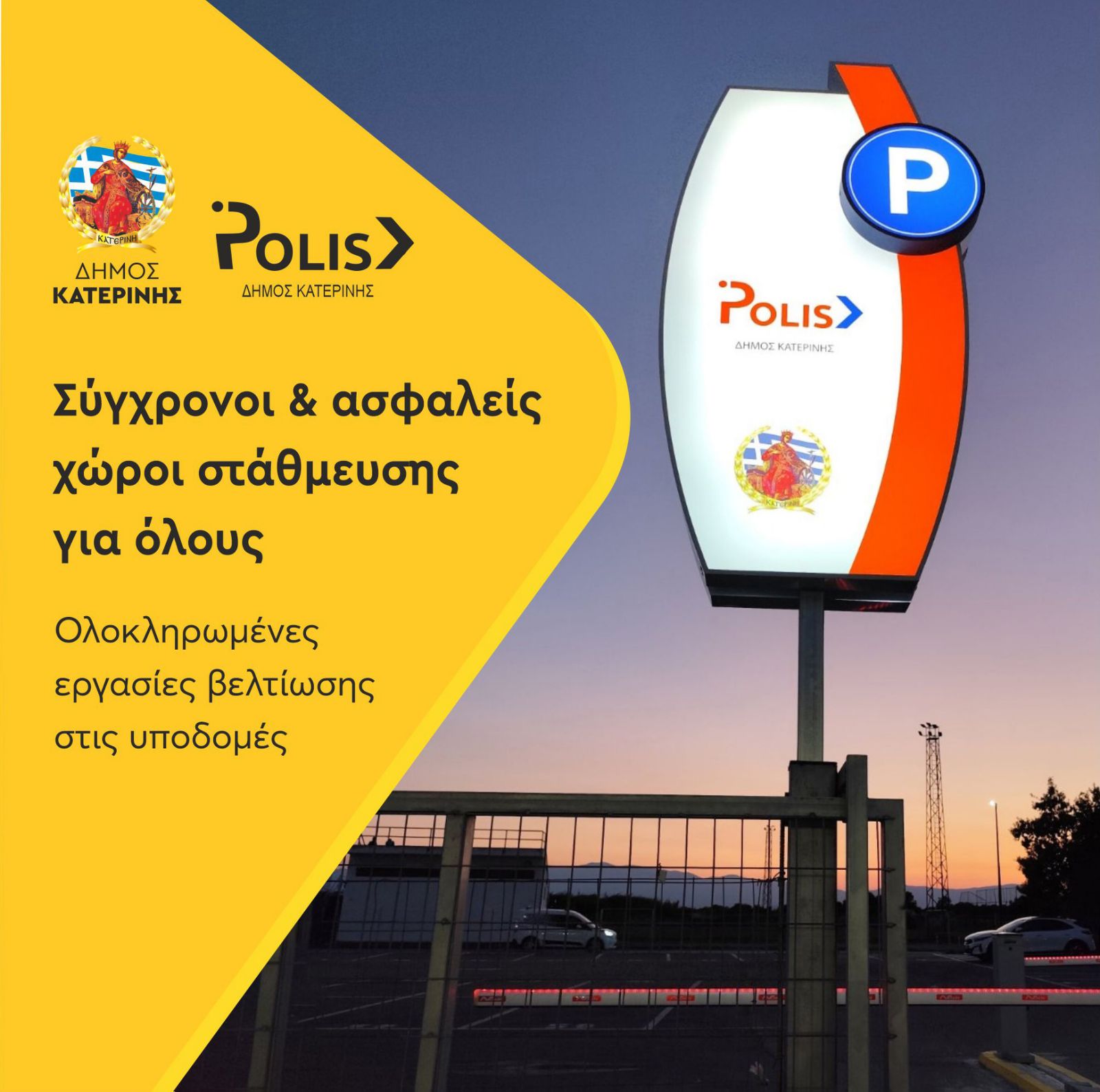 Ουσιαστικές παρεμβάσεις αναβάθμισης στους δημοτικούς χώρους στάθμευσης υλοποιήθηκαν την τρέχουσα περίοδο από τη δημοτική επιχείρηση Πάρκινγκ «ΠΟΛΙΣ Α.Ε.», με στόχο τη βελτίωση της καθημερινότητας των πολιτών, την ενίσχυση της ασφάλειας και την αναβάθμιση της συνολικής εμπειρίας στάθμευσης στο κέντρο της Κατερίνης καθώς και στο παραλιακό μέτωπο.