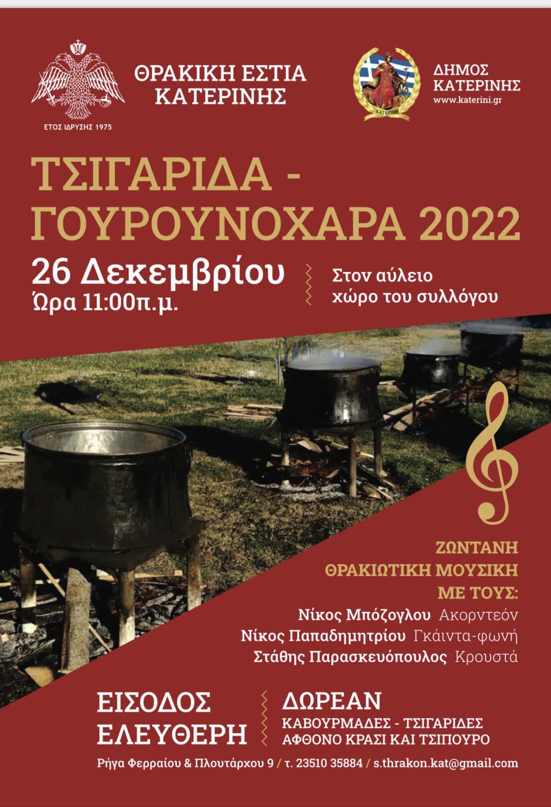 Δήμος Κατερίνης - Θρακική Εστία: Παραδοσιακό έθιμο Τσιγαρίδας (Γουρουνοχαρά) – Δευτέρα 26 Δεκεμβρίου στον αύλειο χώρο του συλλόγου, ώρα 12:00μ.