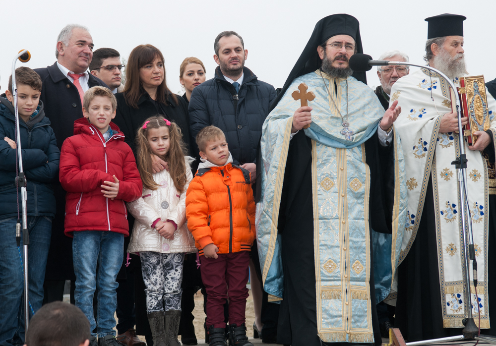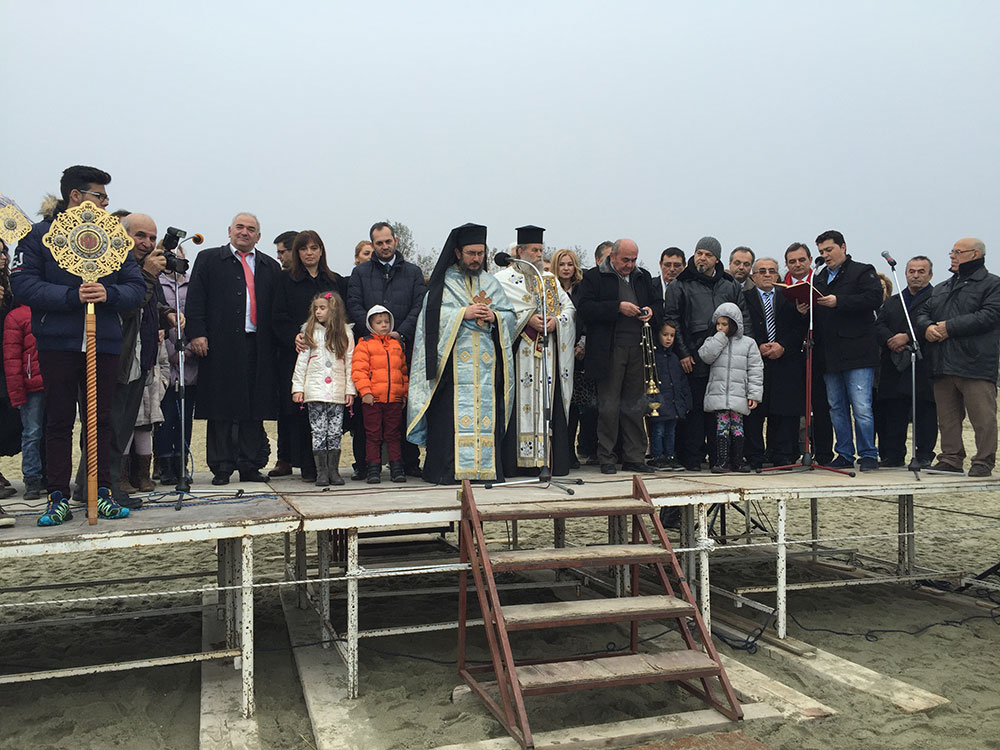 Τον Τίμιο Σταυρό στην θάλασσα έριξε ο Αρχιμανδρίτης π. Ιγνάτιος Σωτηριάδης,ο οποίος ευχαρίστησε τον Δήμαρχο Σάββα Χιονίδη «για την συμβολή - όπως κάθε χρόνο - του Δήμου στην άρτια διοργάνωση της τελετής, ενώ ευχήθηκε σε επισκέπτες και δημότες, χρόνια πολλά, ευλογημένα, υγεία και έργα αγαθά».