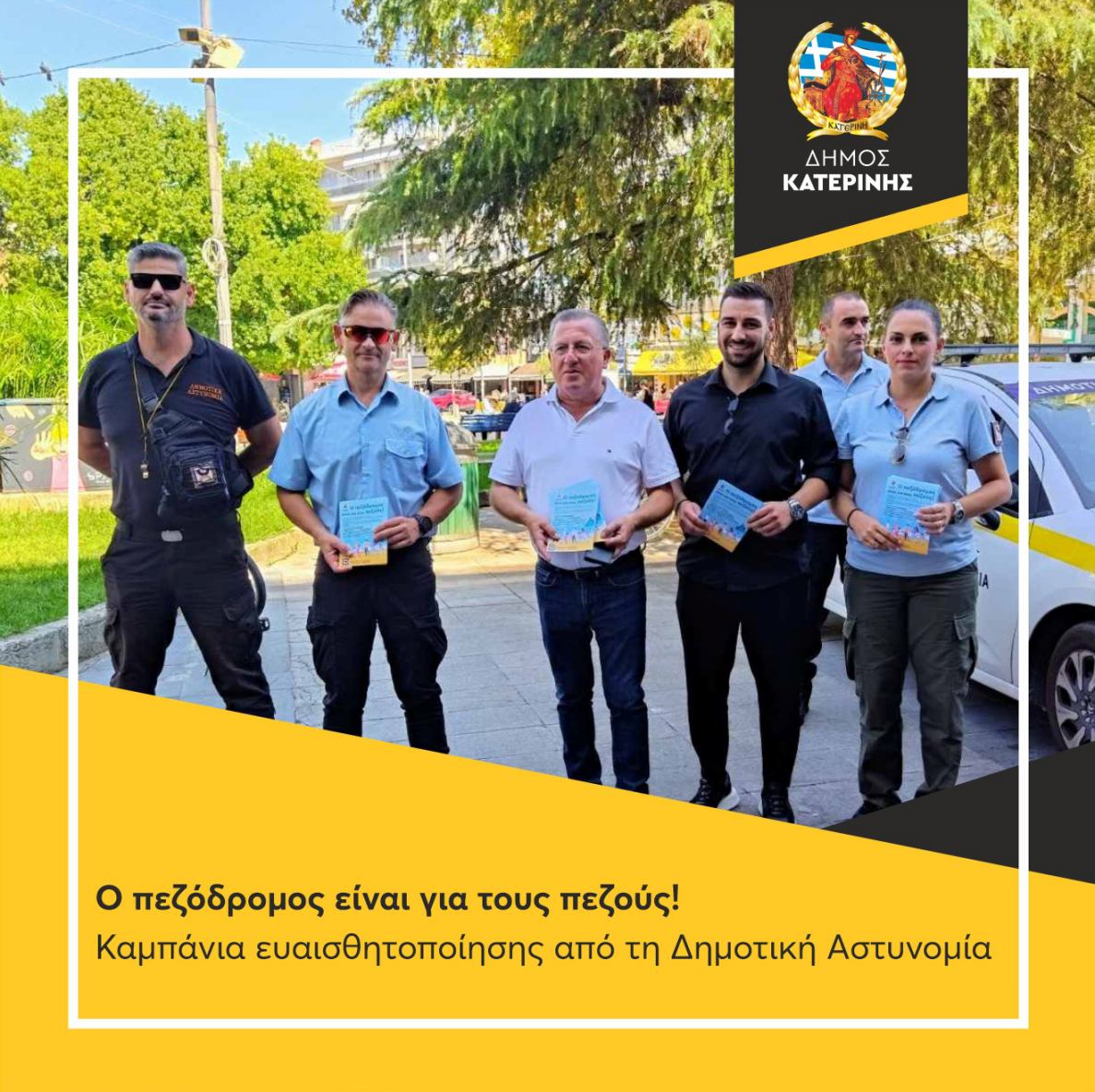 Ο Δήμαρχος Κατερίνης Ιωάννης Ντούμος, ο αρμόδιος αντιδήμαρχος Ελευθέριος Παγωνίδης και στελέχη της υπηρεσίας, διένειμαν ενημερωτικά φυλλάδια, σε διερχόμενους πολίτες, αναδεικνύοντας την ανάγκη σεβασμού στους πεζούς και τη σημασία της εύρυθμης λειτουργίας των πεζοδρόμων.