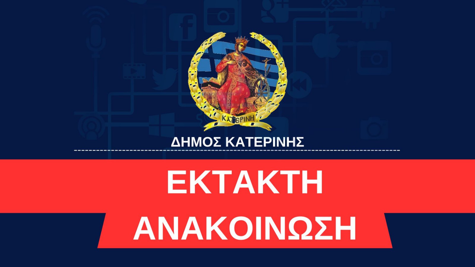 Υπογραμμίζεται ότι ουδείς υπάλληλος ή εκπρόσωπος του Δήμου Κατερίνης ζητά ή θα ζητήσει στοιχεία που σχετίζονται με τους τραπεζικούς τους λογαριασμούς (e-banking, IBAN κλπ), είτε τηλεφωνικά είτε ηλεκτρονικά μέσω εφαρμογών.