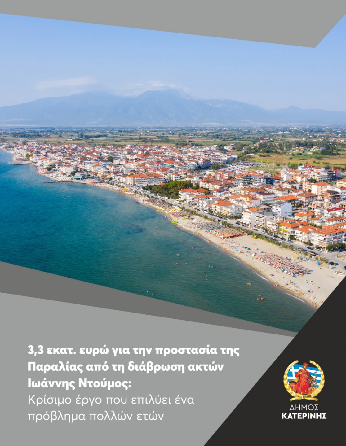 Δήμος Κατερίνης: 3,3 εκατ. ευρώ για την προστασία της Παραλίας από τη διάβρωση ακτών