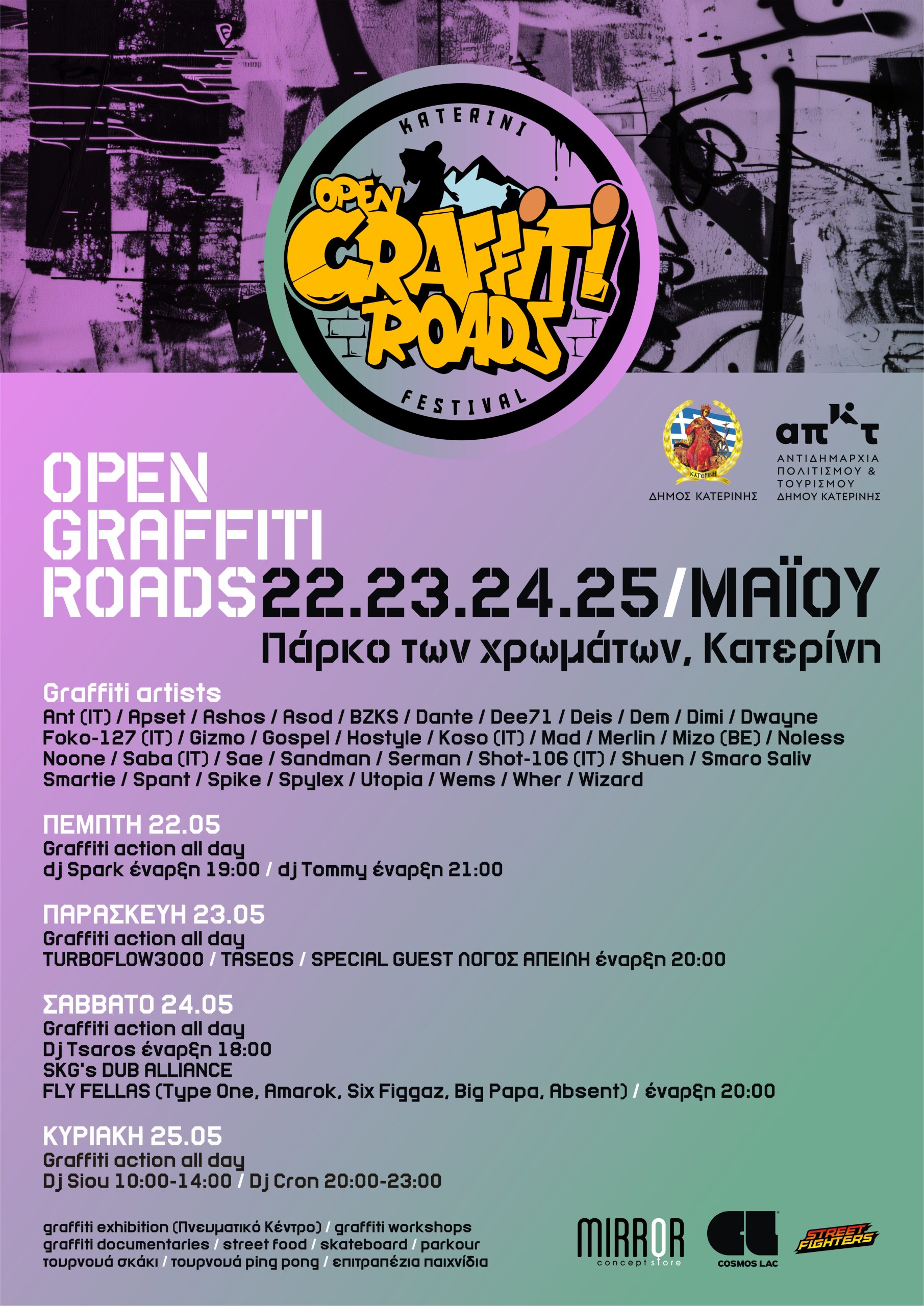 Free cookie consent management tool by TermsFeed Δρόμοι Ανοιχτοί: OPENROADS – Graffiti Festival 2025 Στο Πάρκο των Χρωμάτων | 22 – 25 Μαΐου (πρόγραμμα) – OlymposPress.gr