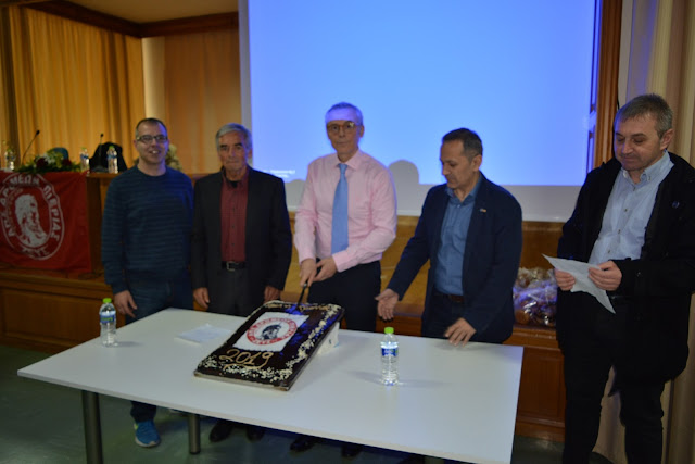 Η Κλινική Διαιτολόγος-Αθλητική Διατροφολόγος Ειρήνη Μπαρμπαρούτση και ο Καθηγητής Φυσικής Αγωγής–π. Ομοσπονδιακός Προπονητής Σταύρος Ζουγγουρίδης στην καθιερωμένη κοπή της πίτας του συλλογου