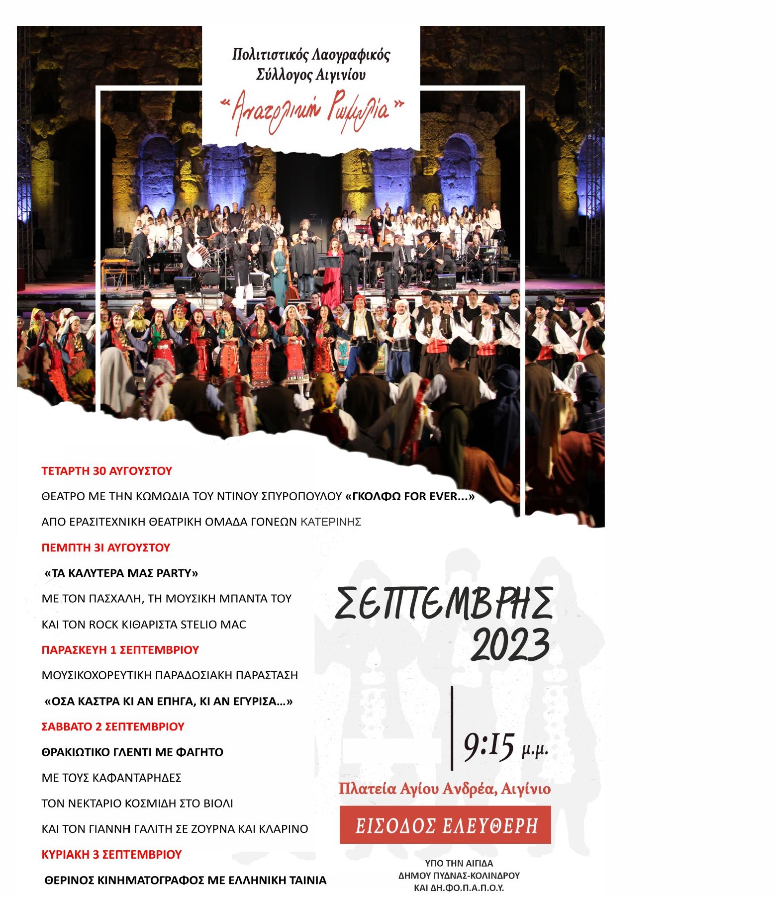 ΕΚΔΗΛΩΣΕΙΣ “ΣΕΠΤΕΜΒΡΗΣ 2023” – ΑΝΑΤΟΛΙΚΗ ΡΩΜΥΛΙΑ ΑΙΓΙΝΙΟΥ