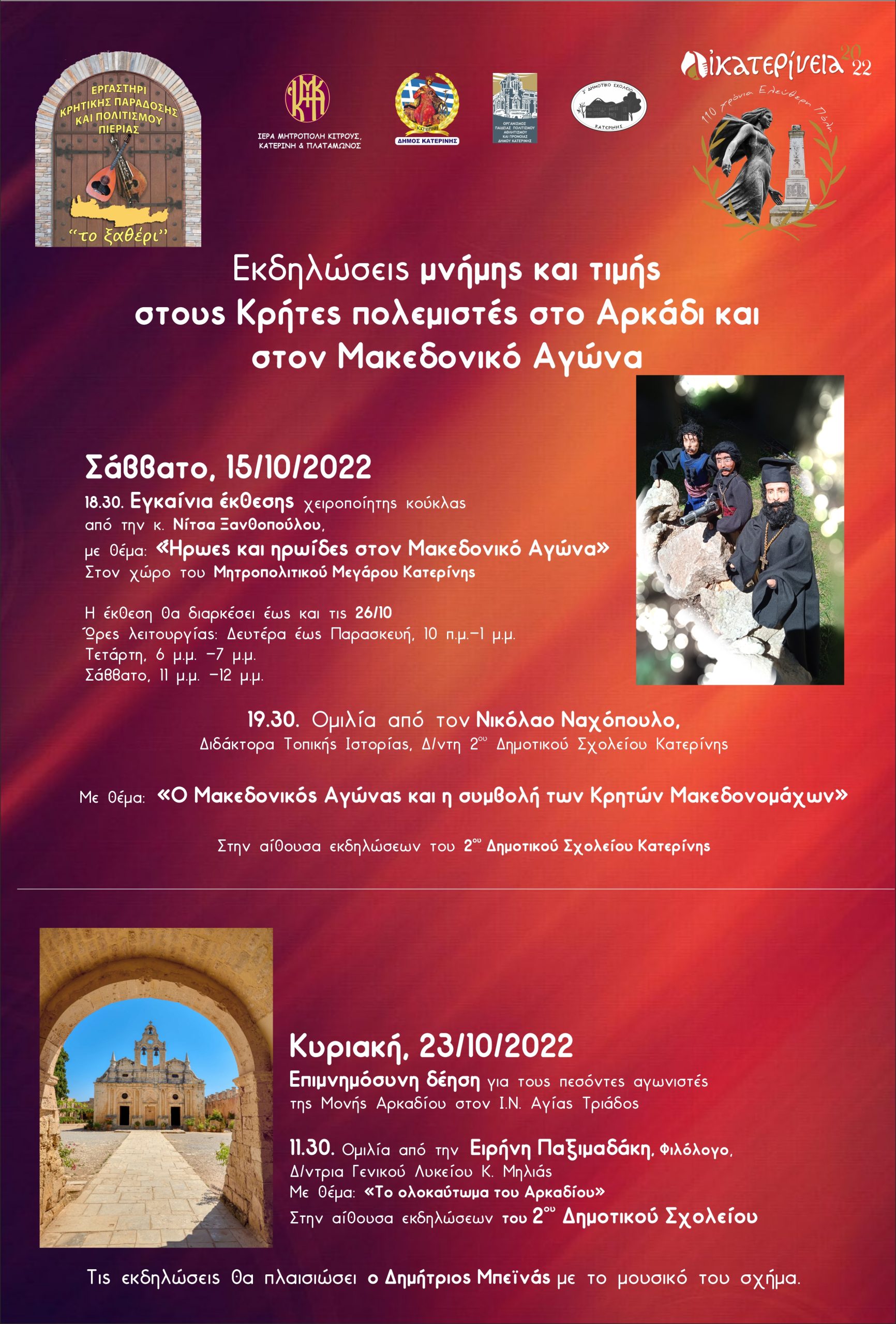 Εκδηλώσεις Μνήμης & Τιμής στους Κρήτες πολεμιστές στο Αρκάδι & στον Μακεδονικό Αγώνα