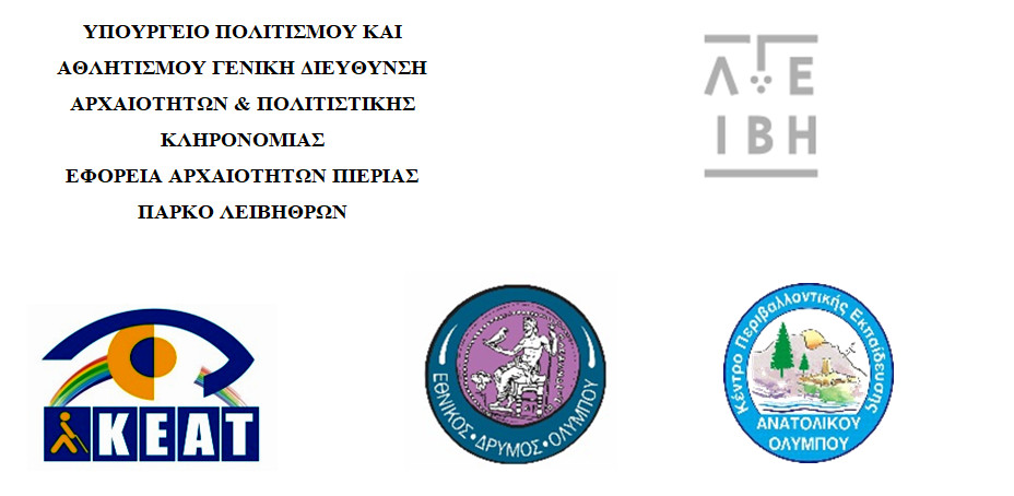 Ø κατασκευή σε μήτρα ανάγλυφου πλακιδίου με βότρυ και την επιγραφή ΛΕΙ-ΒΗ, που αποτελεί μικρογραφική αναπαράσταση αρχαίου μολύβδινου βάρους από τον αρχαιολογικό χώρο των Λειβήθρων και ενέπνευσε το λογότυπο του πάρκου (Β. Κυπριανού, ΕΦΑ Πιερίας)