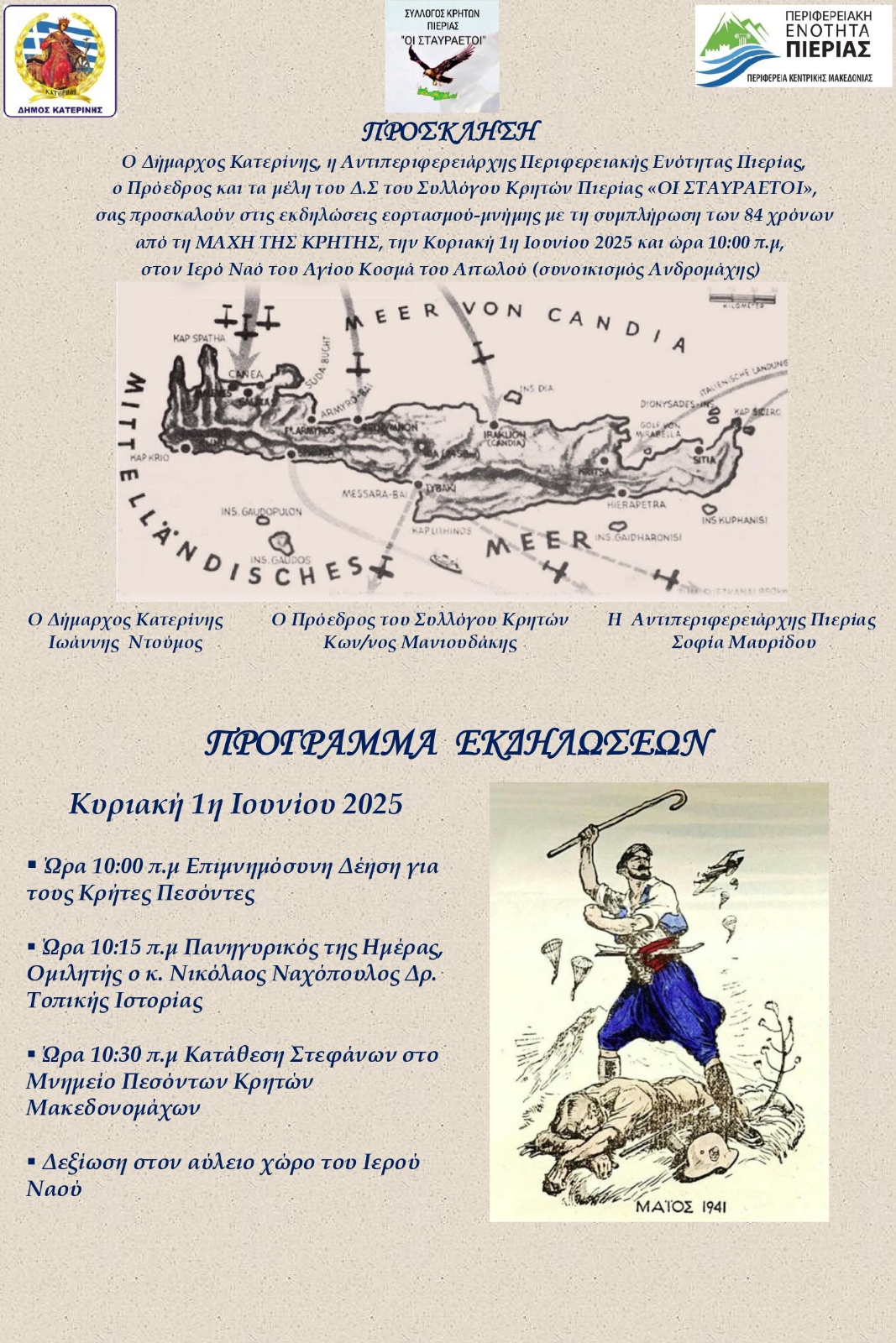 Εορταστικές εκδηλώσεις στην Κατερίνη για την 84η επέτειο από