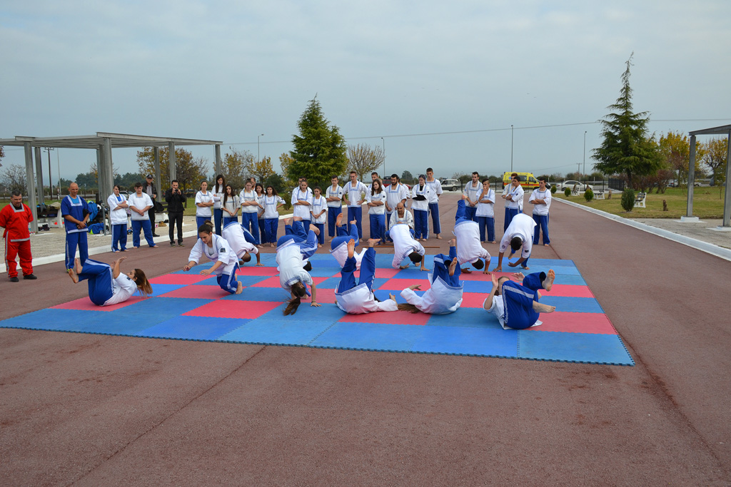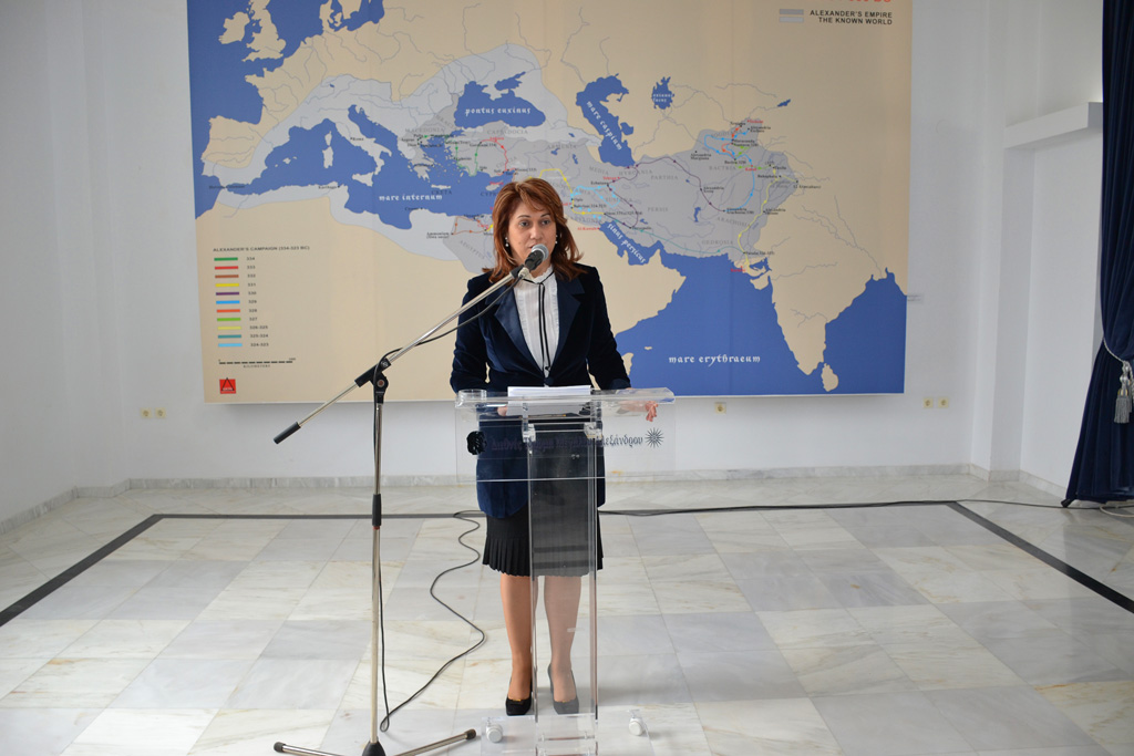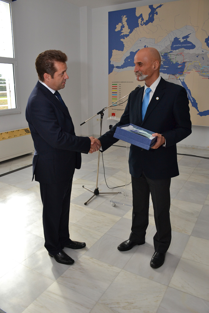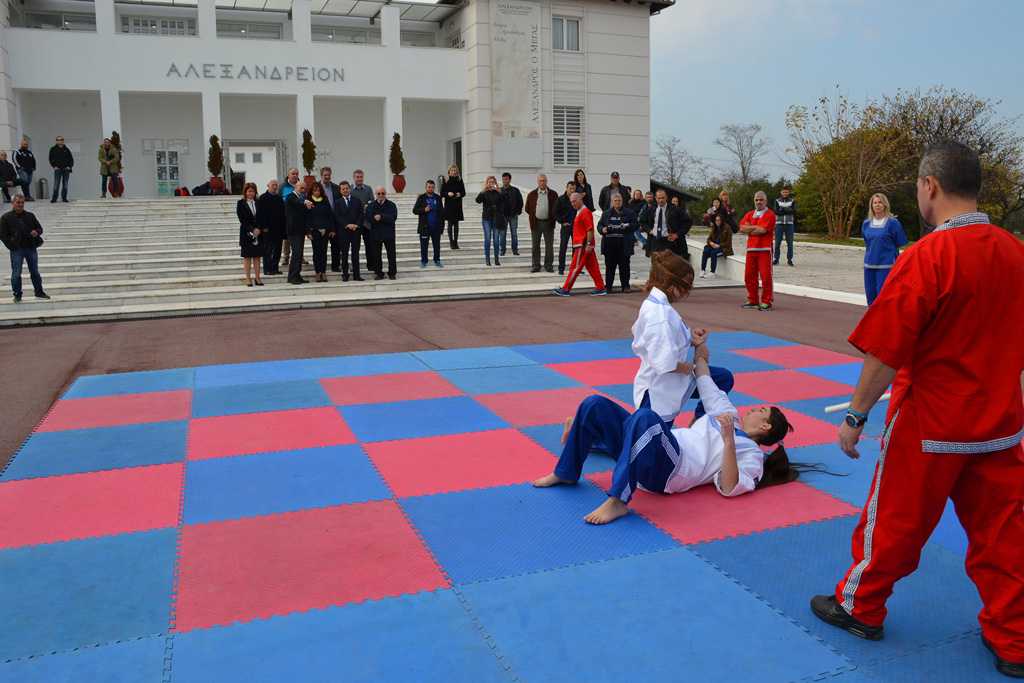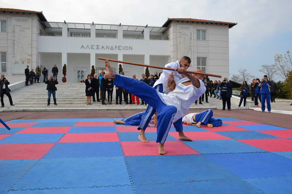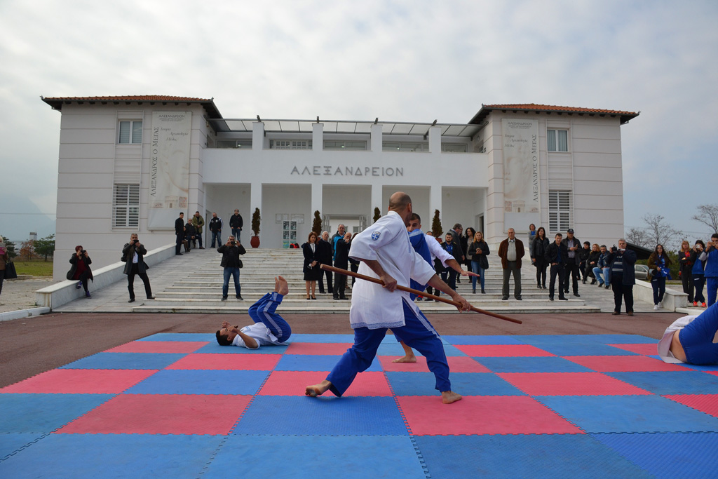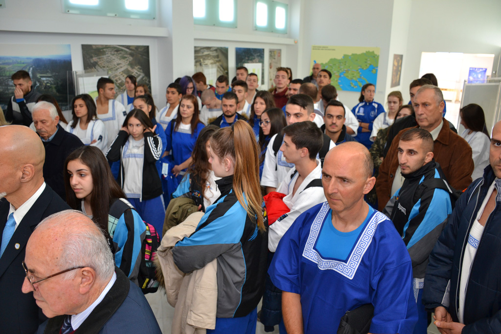 Κατά την προσέλευσή τους στο χώρο του Διεθνούς Ιδρύματος Μεγάλου Αλεξάνδρου οι αθλητές ξεναγήθηκαν στους χώρους του κτιρίου καθώς και στην έκθεση φωτογραφίας με θέμα το Μέγα Αλέξανδρο, που φιλοξενείται στον ισόγειο χώρο, από την αρχαιολόγο κ. Διονυσία Τσίρου.