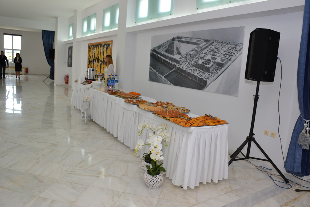 Τέλος, παρατέθηκε από τον Πρόεδρο κ. Διονύση Πασχάλη, δεξίωση στον ισόγειο χώρο του Διεθνούς Ιδρύματος Μεγάλου Αλεξάνδρου, υπό τους ήχους πιάνου και τραγουδιού σε κλασσικό και έντεχνο ρεπερτόριο Ελλήνων συνθετών.