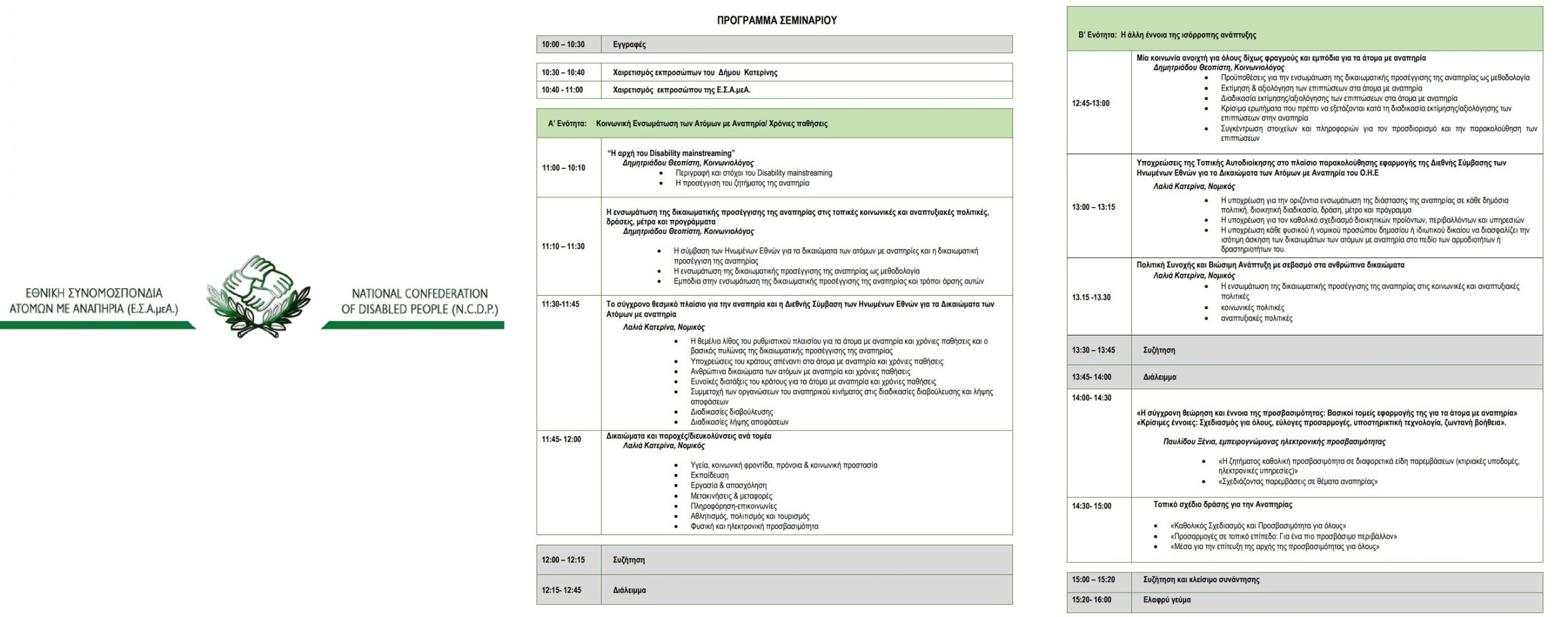 - Επιμορφωτικό σεμινάριο στην Κατερίνη από την Εθνική Συνομοσπονδία Ατόμων με Αναπηρία
