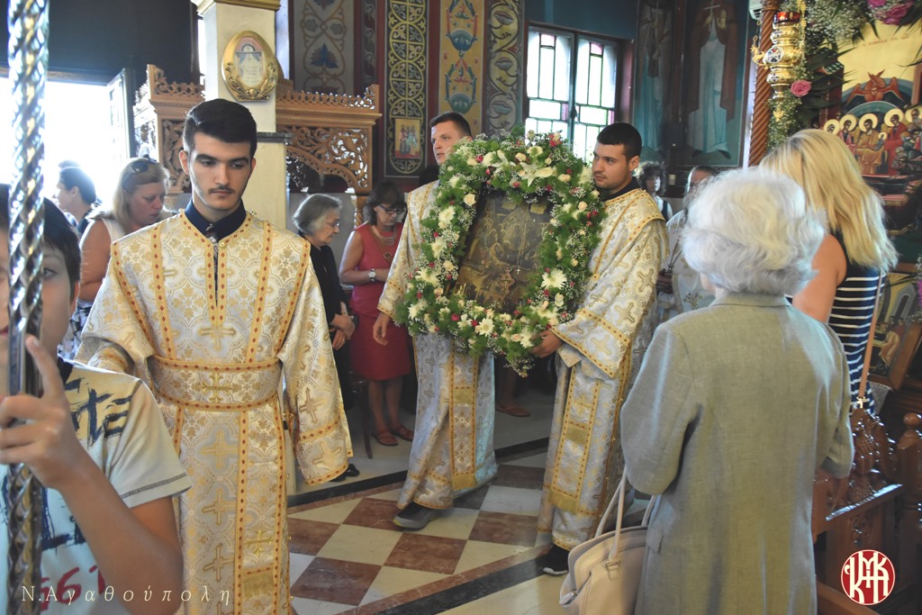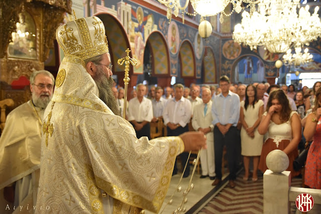 · Τη νύχτα της ίδιας ημέρας προς ξημερώματα της κυριώνυμης ημέρας Δευτέρας 15 Αυγούστου προέστη της Αγρυπνίας της Εορτής και ιερούργησε στον Ιερό Ναό Αγίας Παρασκευής Κατερίνης.