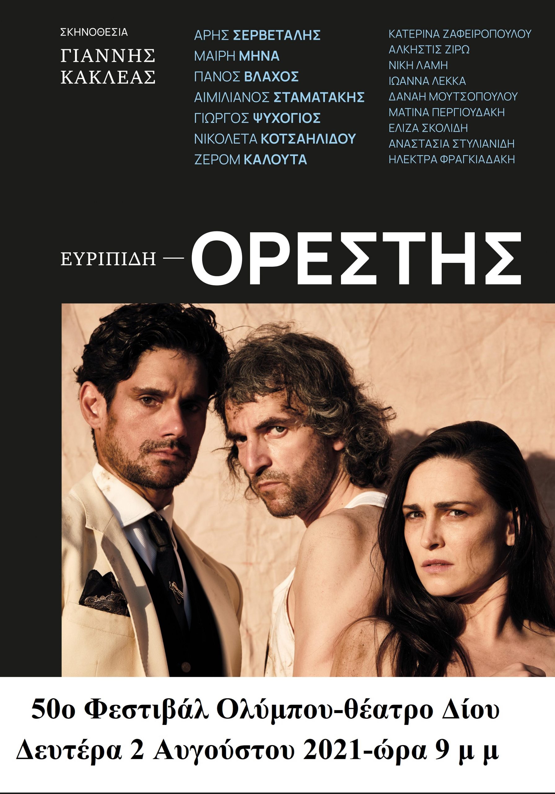 Η τραγωδία «Ορέστης» του Ευριπίδη, ένα έργο γεμάτο σφοδρές συγκρούσεις, απολογίες, ανατροπές και έντονο πολιτικό προβληματισμό, παρουσιάζεται τη Δευτέρα 2 Αυγούστου 2021, στις 9 το βράδυ, στο αρχαίο θέατρο Δίου, στο πλαίσιο του 50ου Φεστιβάλ Ολύμπου.