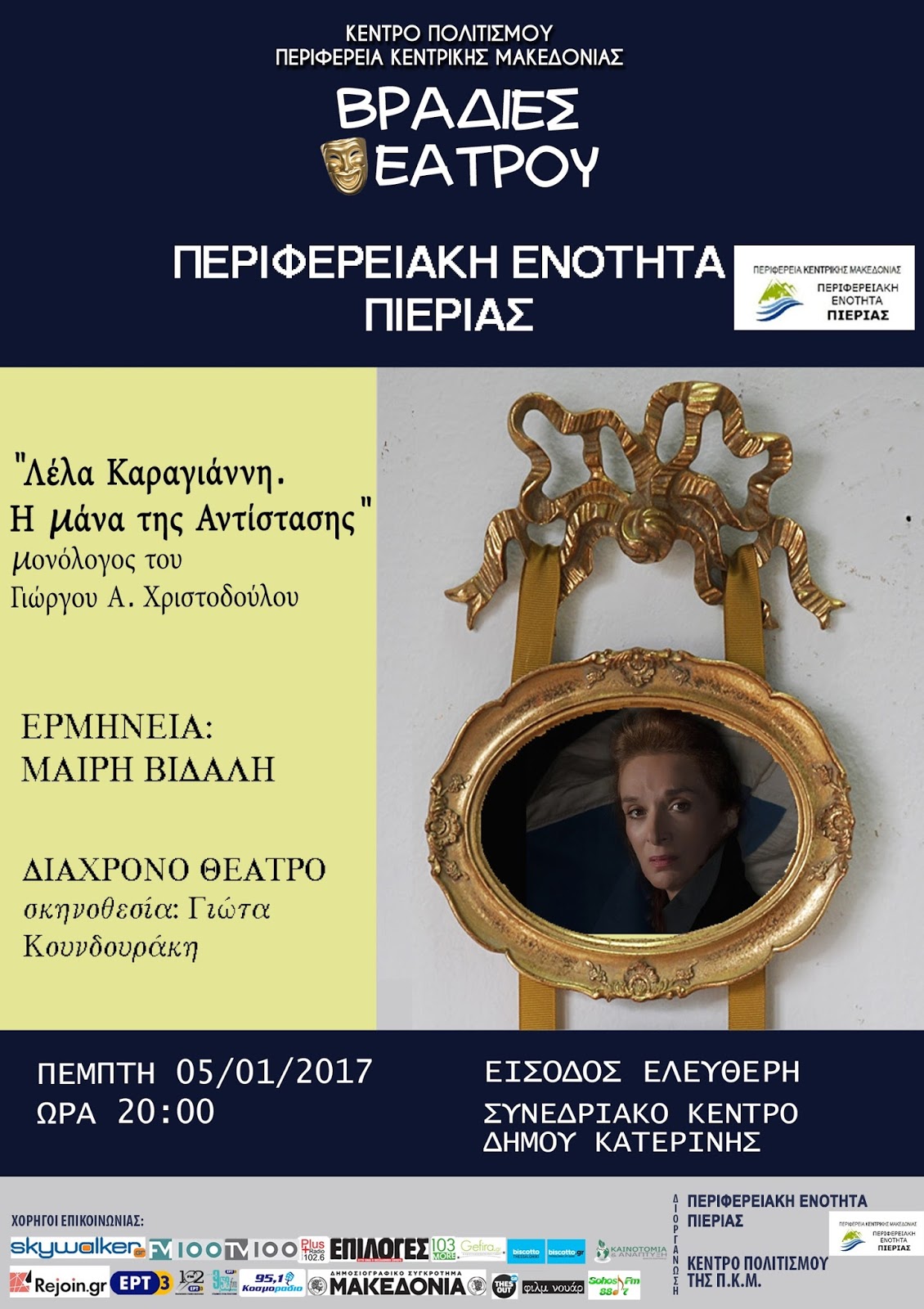 ΘΕΑΤΡΟ «Λέλα Καραγιάννη. Η μάνα της Αντίστασης» ΚΑΤΕΡΙΝΗ 5/1/2017