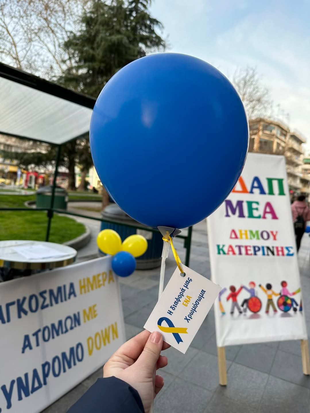 Μία έκρηξη χαράς, ενότητας και αλληλεγγύης, γέμισε την πλατεία Ελευθερίας, στις 21 Μαρτίου, καθώς το ΚΔΑΠ - ΜΕΑ του Δήμου Κατερίνης, με την υποστήριξη της Διοίκησης, του προσωπικού, των παιδιών και των γονέων, οργάνωσε μια όμορφη εκδήλωση για την Παγκόσμια Ημέρα για το Σύνδρομο Down.