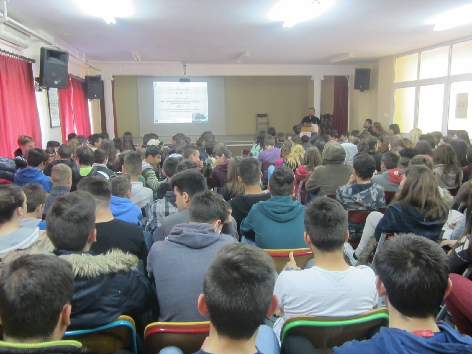 Έτσι, το Τμήμα της Πολιτικής Προστασίας, μετέβη την Πέμπτη 31.03.2016 στο σχολικό συγκρότημα του Γυμνασίου - Λυκείου του Κορινού, όπου μέσα από μια σπονδυλωτή παρουσίαση που αφορούσε τους κινδύνους που ελλοχεύουν στις σχολικές μονάδες αλλά και τον τρόπο που αντιμετωπίζονται, τη θεωρητική προσέγγιση της προστασίας από τους σεισμούς και τις δασικές πυρκαγιές - ενόψει της καλοκαιρινής / αντιπυρικής περιόδου.