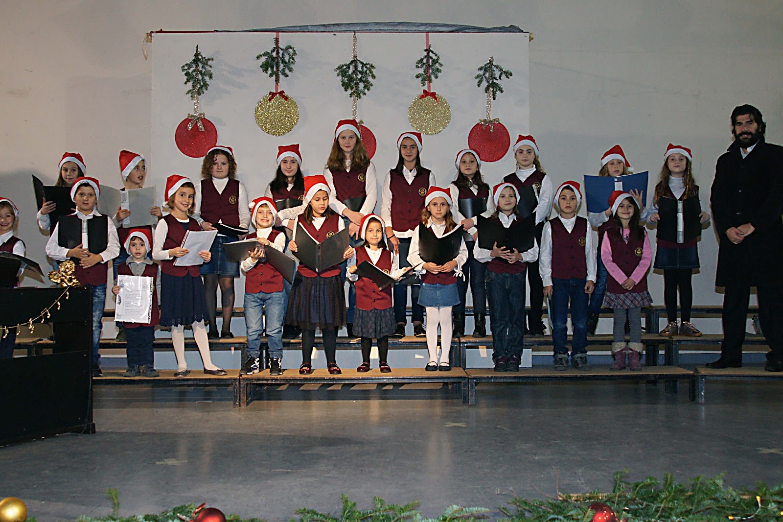 Αρχικά εμφανίστηκε το Παιδικό Τμήμα της Χορωδίας μας, υπό την διεύθυνση του μαέστρου Γιώργου Μπελογιάννη και με την συνοδεία βιολιού από την Μαρίκα Φωτοπούλου. Οι μικροί μας φίλοι τραγούδησαν κάλαντα κι άλλα Χριστουγεννιάτικα τραγούδια, ενώ με τα κόκκινα Αγιοβασιλιάτικα σκουφάκια τους ενθουσίασαν το κοινό με τις γλυκές φωνούλες τους.