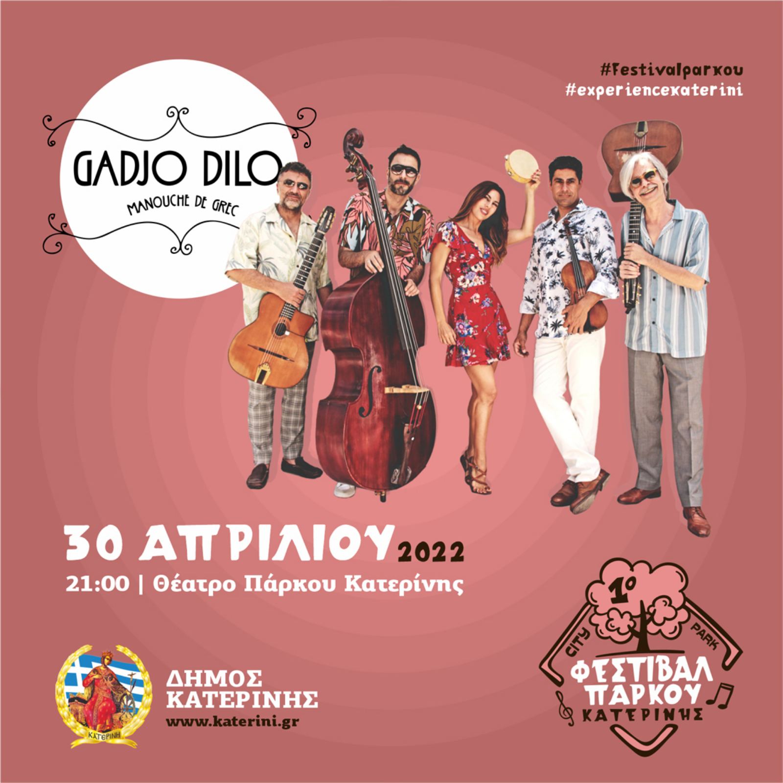Oι αγαπημένοι Gadjo Dilo για πρώτη φορά στην Κατερίνη, στη μουσική σκηνή του 1ου Φεστιβάλ Πάρκου Κατερίνης. O ιδιαίτερος τους ήχος, ο “Manouche De Grec” όπως τον αποκαλούν και οι ίδιοι, είναι ένα πάντρεμα της μουσικής παράδοσης της gypsy jazz με τα χρώματα της ελληνικής μουσικής. Το πάθος των Gadjo Dilo παρασύρει κάθε φορά το κοινό να χορέψει και να τραγουδήσει μαζί τους. Aυτοσχεδιάζουν, πειραματίζονται και με τραγούδια μιας άλλης εποχής μας μεταφέρουν μηνύματα σύγχρονα και ελπιδοφόρα!