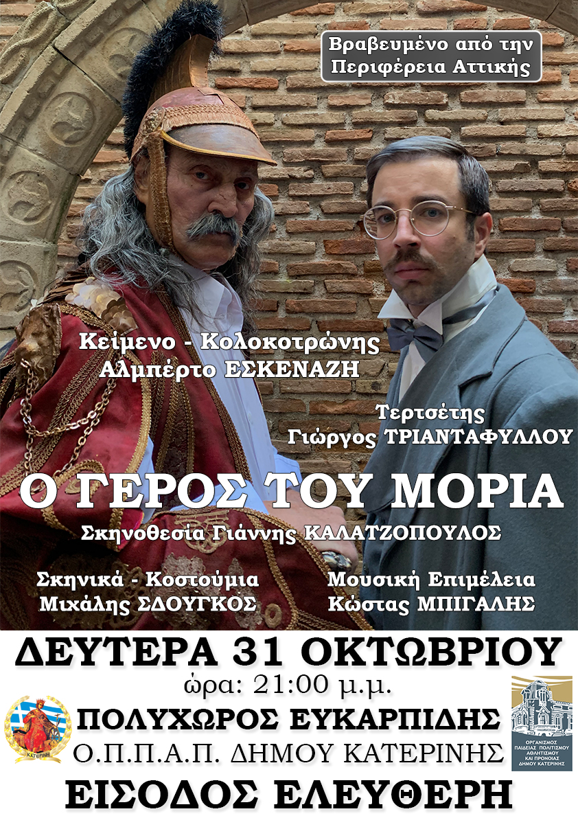 Free cookie consent management tool by TermsFeed «Ο Γέρος του Μοριά» με τον Αλμπέρτο Εσκενάζυ στα “ΑΙΚΑΤΕΡΙΝΕΙΑ” – Δευτέρα 31 Οκτωβρίου & ώρα 21:00 στο Κινηματοθέατρο Ευκαρπίδη – OlymposPress.gr