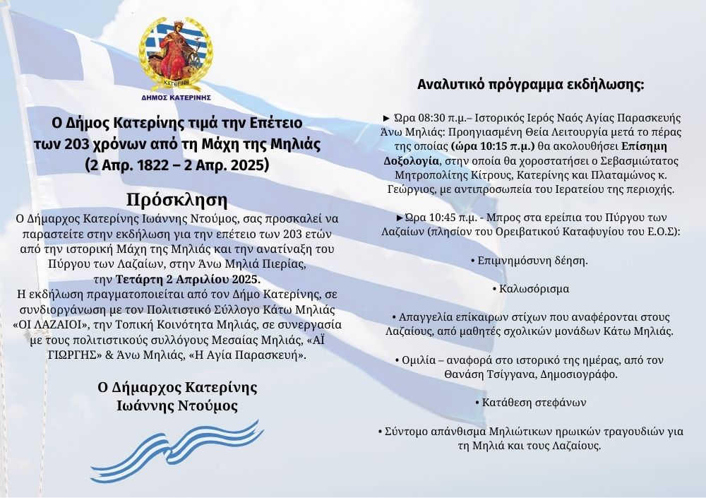 Ο Δήμος Κατερίνης τιμά την Επέτειο των 203 χρόνων από τη Μάχη