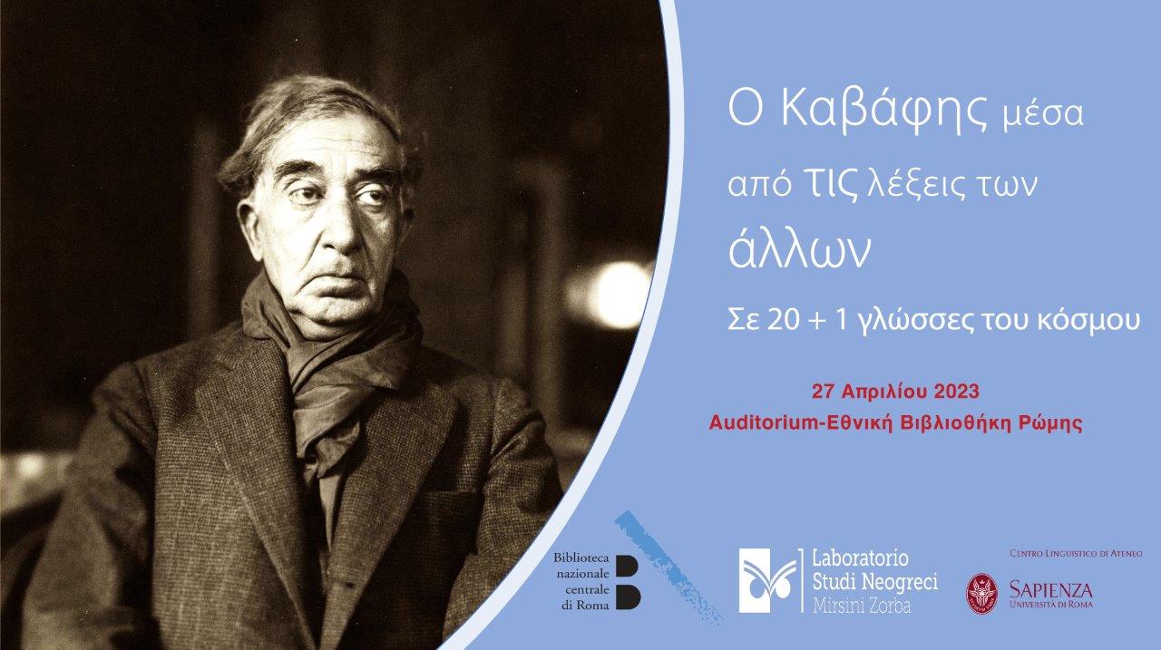 Με αφορμή τη συμπλήρωση ενενήντα χρόνων από το θάνατο του Κωνσταντίνου Π. Καβάφη, το Εργαστήριο Νεοελληνικών Σπουδών Μυρσίνη Ζορμπά του Τμήματος Ευρωπαϊκών, Αμερικανικών και Διαπολιτισμικών Σπουδών, σε συνεργασία με το Κέντρο Γλωσσών του Πανεπιστημίου της Ρώμης Sapienza και με την Εθνική Βιβλιοθήκη της Ρώμης, διοργανώνουν ποιητική συνάντηση με την παρουσίαση καβαφικών ποιημάτων σε γλώσσες από διάφορα μέρη του κόσμου.