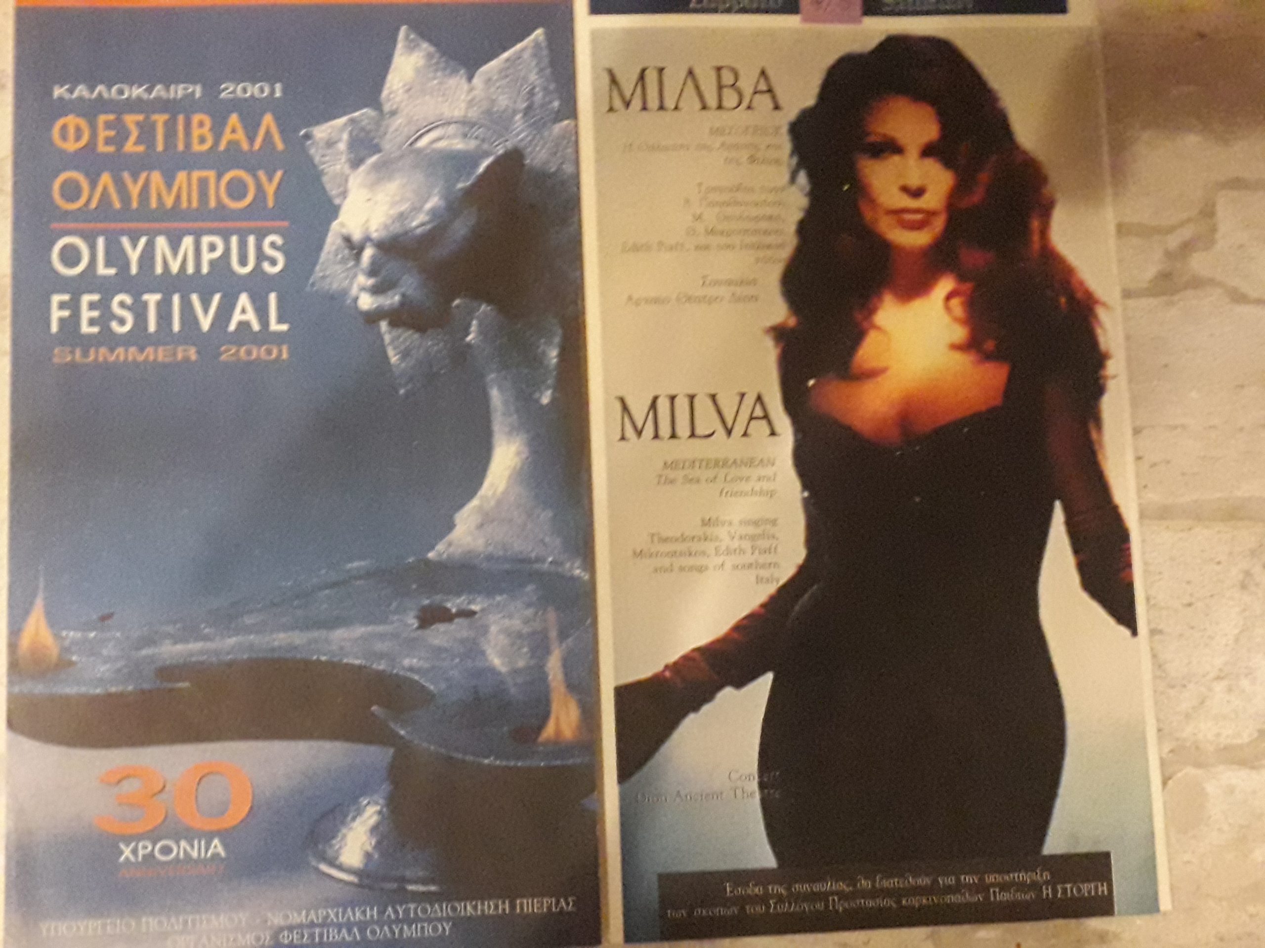 Το Φεστιβάλ Ολύμπου είχε τη χαρά να φιλοξενήσει τη μεγάλη αυτή ερμηνεύτρια στις 4 Αυγούστου του 2001 στο αρχαίο θέατρο Δίου, σε μια ανεπανάληπτη συναυλία. Η ντίβα του ιταλικού πενταγράμμου Μίλβα είχε συνεργαστεί το 1994 με τον σπουδαίο Έλληνα συνθέτη, Θάνο Μικρούτσικο. Μία συνεργασία σταθμό, που ξεκίνησε δύο χρόνια νωρίτερα με ένα τηλεφώνημα το οποίο ο ίδιος Θάνος Μικρούτσικος θεώρησε αρχικά ως φάρσα. Καρπός της συνεργασία αυτής ήταν ο δίσκος «Volpe d'amore» με τραγούδια του μουσικοσυνθέτη ιταλικό στίχο, αλλά και ένα κομμάτι σε στίχους της Λτίτλο «Θάλασσα», το οποίο η Ιταλίδα ερμηνεύτρια τραγούδησε στα ελληνικά.