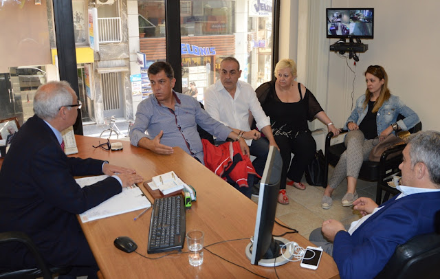 Ο Πρόεδρος του Εμπορικού Συλλόγου Κατερίνης Κώστας Ρέχαςσυνοδευόμενος από τα μέλη του Διοικητικού Συμβουλίου Ελένη Ηλιάδου (A' Αντιπρόεδρο), Νικόλαο Σταλίκα (Β΄Αντιπρόεδρο),Νικόλαο Πάππα (Γενικό Γραμματέα), Ιωάννη Ορφανίδη (Ταμία) και τα μέλη Νικόλαο Μακρίδη και Αναστασία Μπίρτση επισκέφθηκαν την Τράπεζα νωρίς το μεσημέρι της Πέμπτης 9 Ιουνίου. Εκεί πραγματοποίησαν συνάντηση με τα μέλη της διοίκησης της ΤράπεζαςΓιώργο Τσιαλό (Αντιπρόεδρο), Ηρακλή Τσιτλακίδη (Γενικό Γραμματέα), Κώστα Ζησόπουλο (Ταμία), Νικόλαο Χουσουρίδη (μέλος) καθώς και τον Γενικό Διευθυντή Νικόλαο Μπασδάνη.