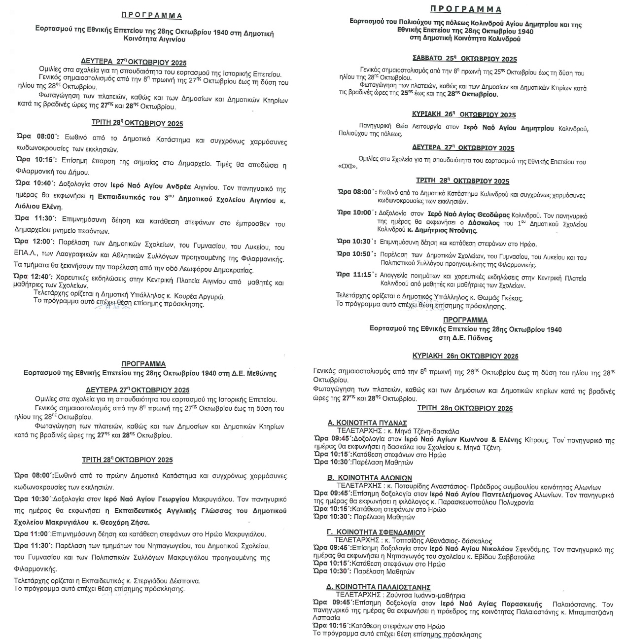 Προγράμματα εορτασμού της Εθνικής Επετείου της 28ης Οκτωβρίου. ΔΗΜΟΣ ΠΥΔΝΑΣ-ΚΟΛΙΝΔΡΟΥ